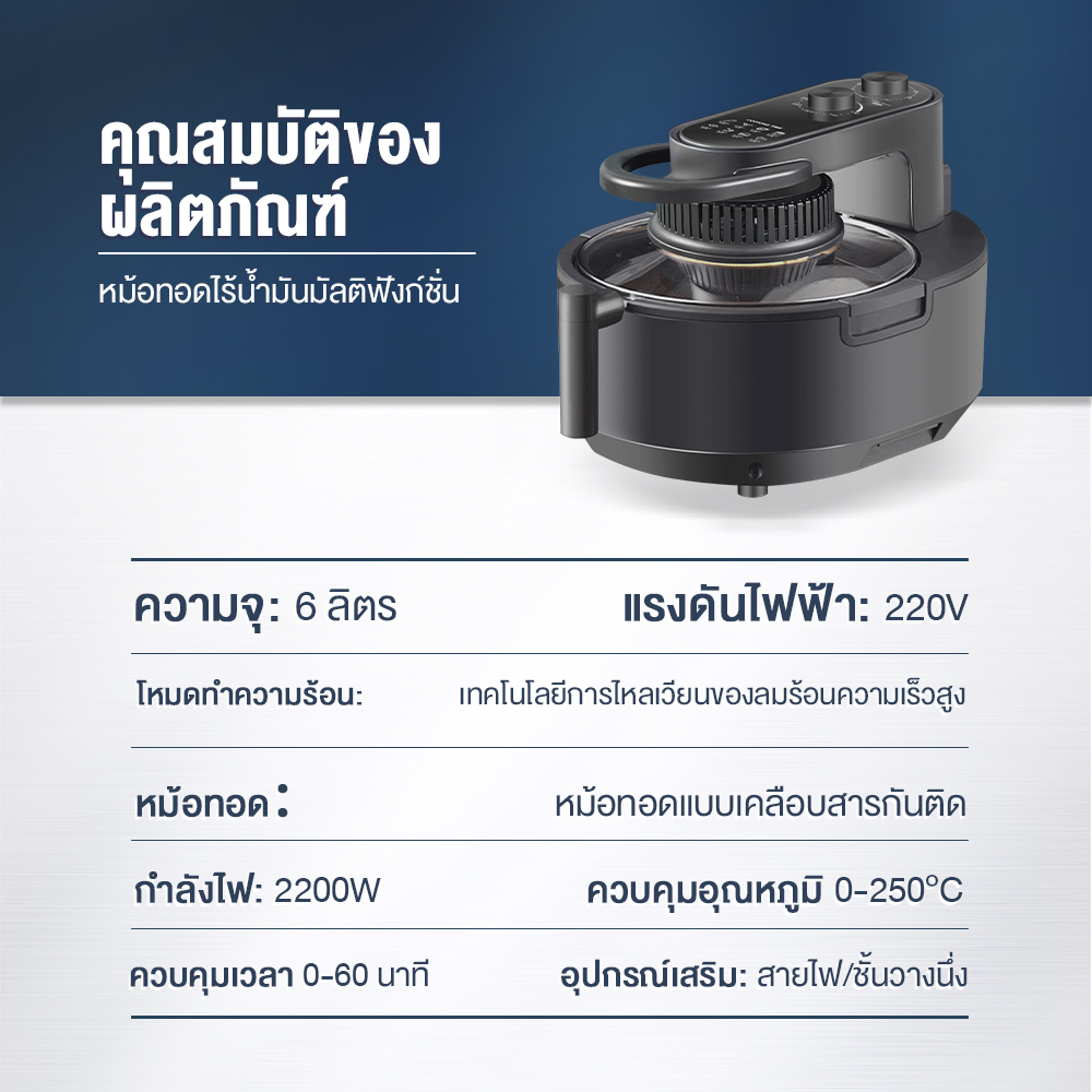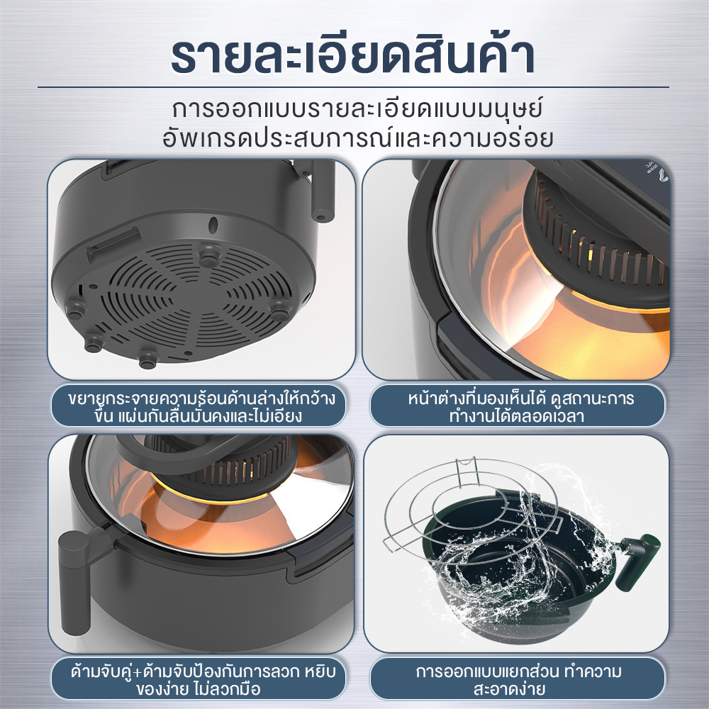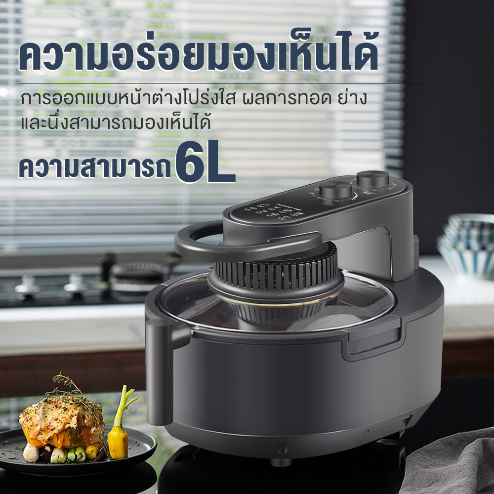 YOTEX หม้อทอดไร้น้ำมัน หม้ออบลมร้อน air fryer หม้อทอดไร้น้ำมัน หม้อทอดไร้ น้ำมัน 6ลิตร สามารถมองเห็นอาหาร เตาอบลมร้อน360°