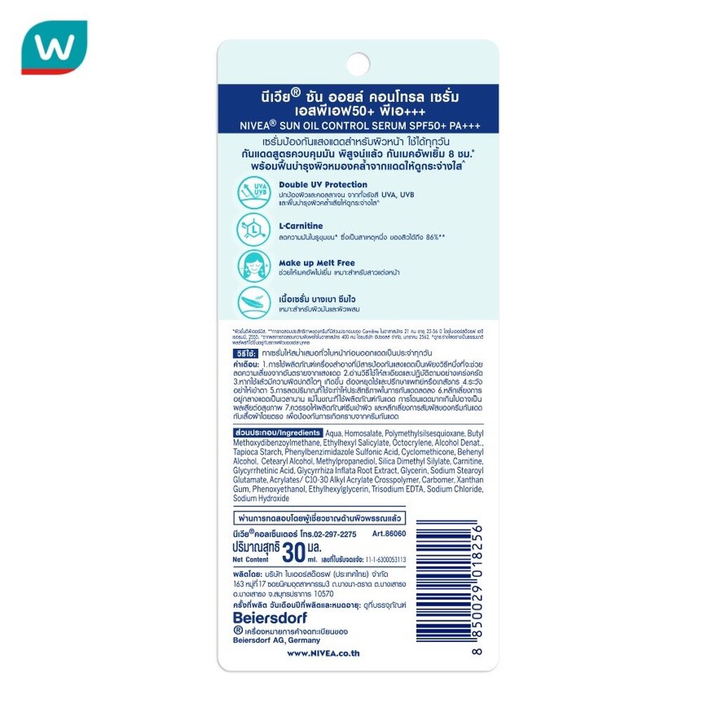 Nivea นีเวีย ซัน ออยล์ คอนโทรล เซรั่ม เอสพีเอฟ50+พีเอ+++ 30 มล.