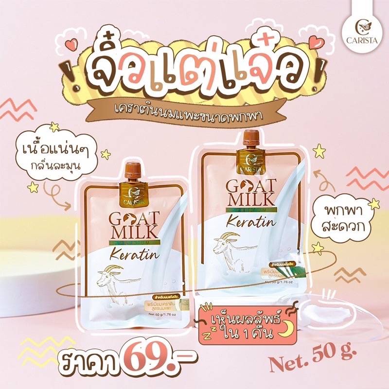 (1ซอง) Carista Goat Milk Premium Keratin พรีเมี่ยมเคราติน สูตรนมแพะ บำรุงผมแห้งเสีย