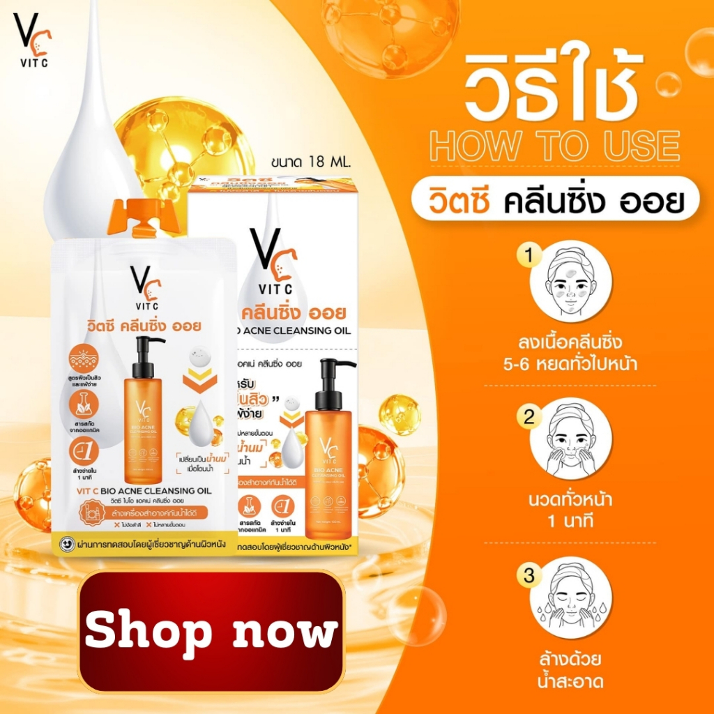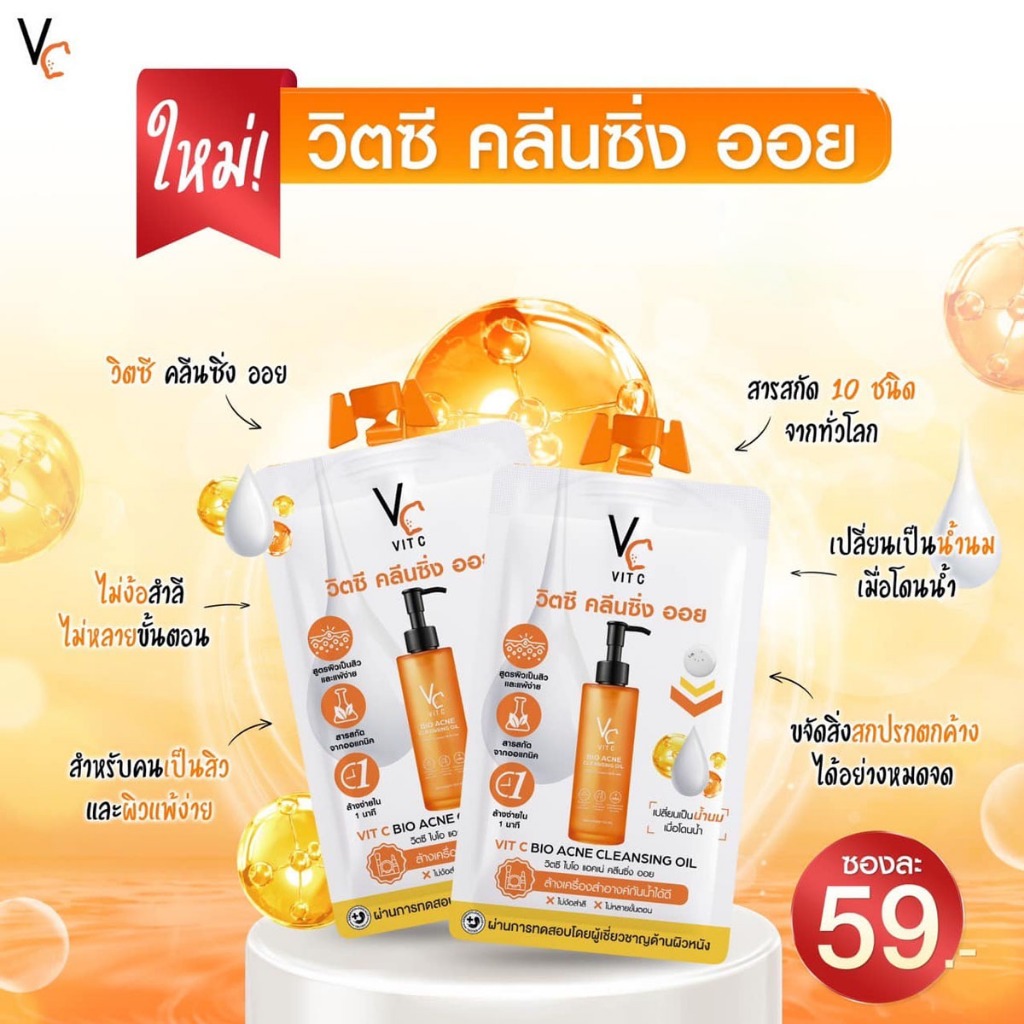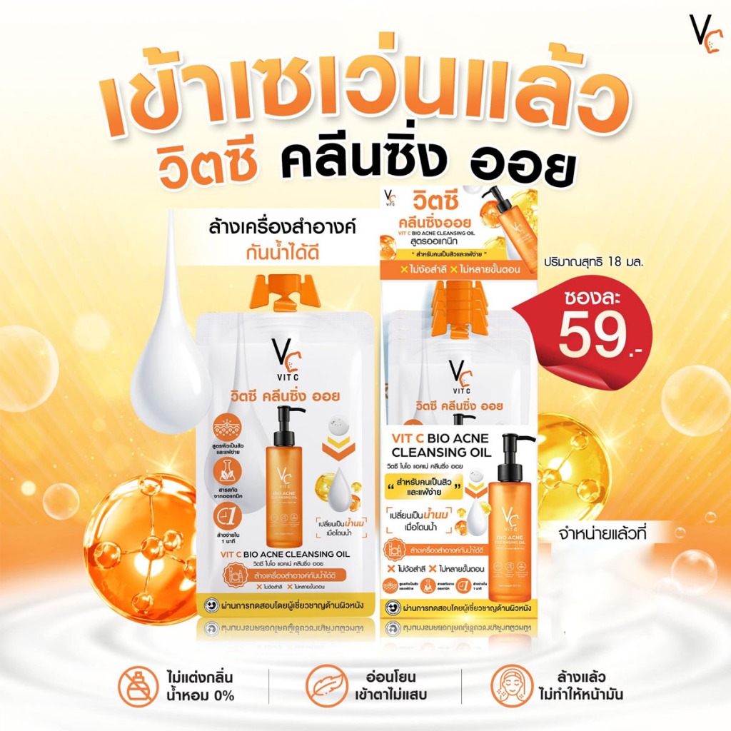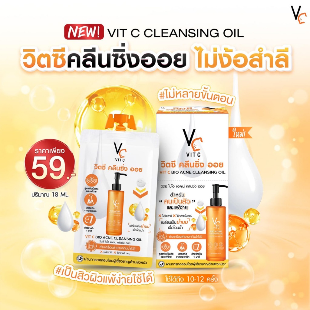 RATCHA รัชชา วีซีวิตซี ไบโอ แอคเน่ คลีนซิ่ง ออย 18 มล. Ratcha Life Vit C Bio Acne Cleansing Oil Set