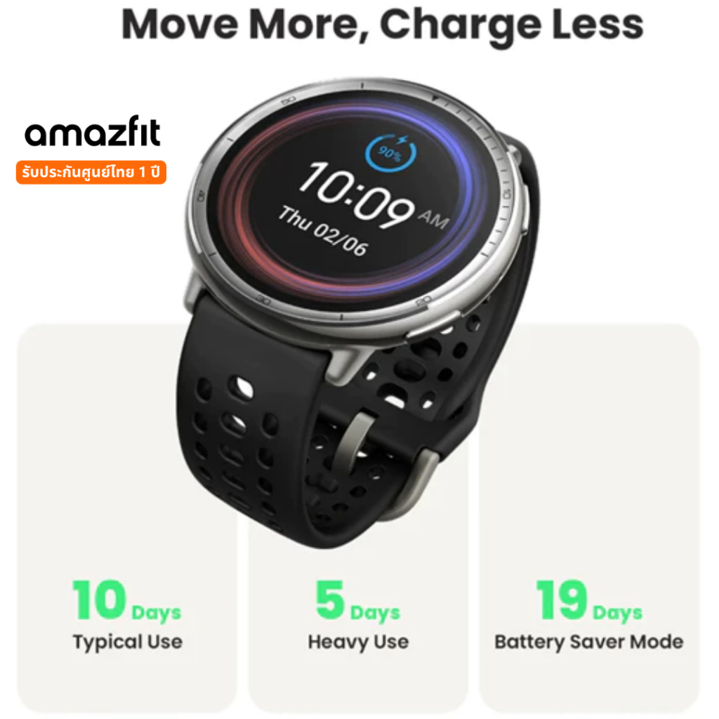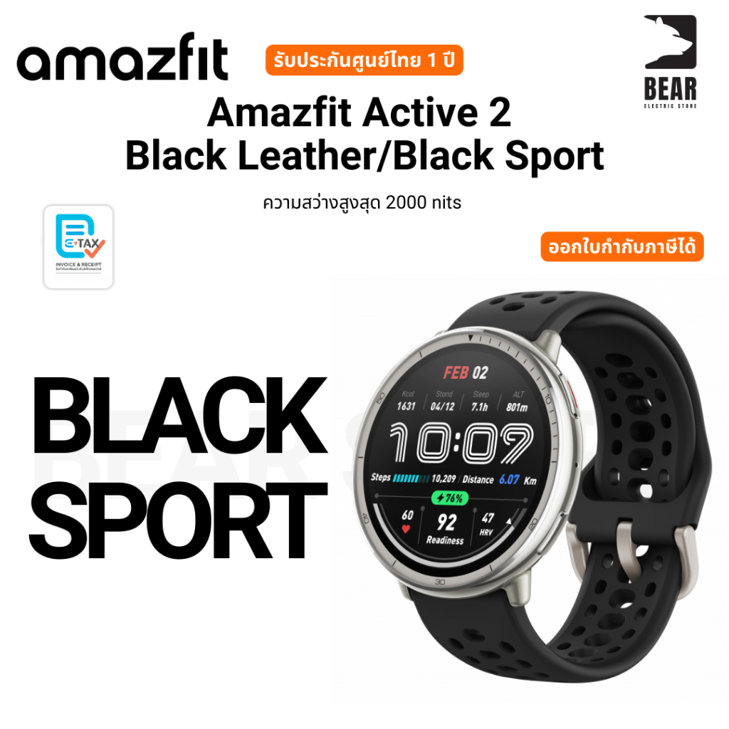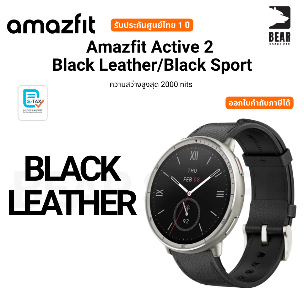 Amazfit Active 2 Black Leather/Black Sport ความสว่างสูงสุด 2000 nits รับประกันศูนย์ไทย 1 ปี