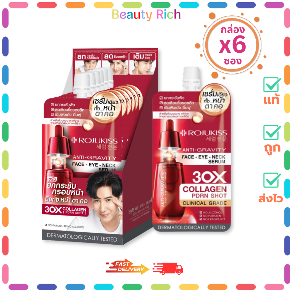 (กล่อง 6 ซอง) Rojukiss Anti-Gravity Face-Eye-Neck Serum – โรจูคิส เฟซ-อาย-เนค เซรั่ม (8 ml.)
