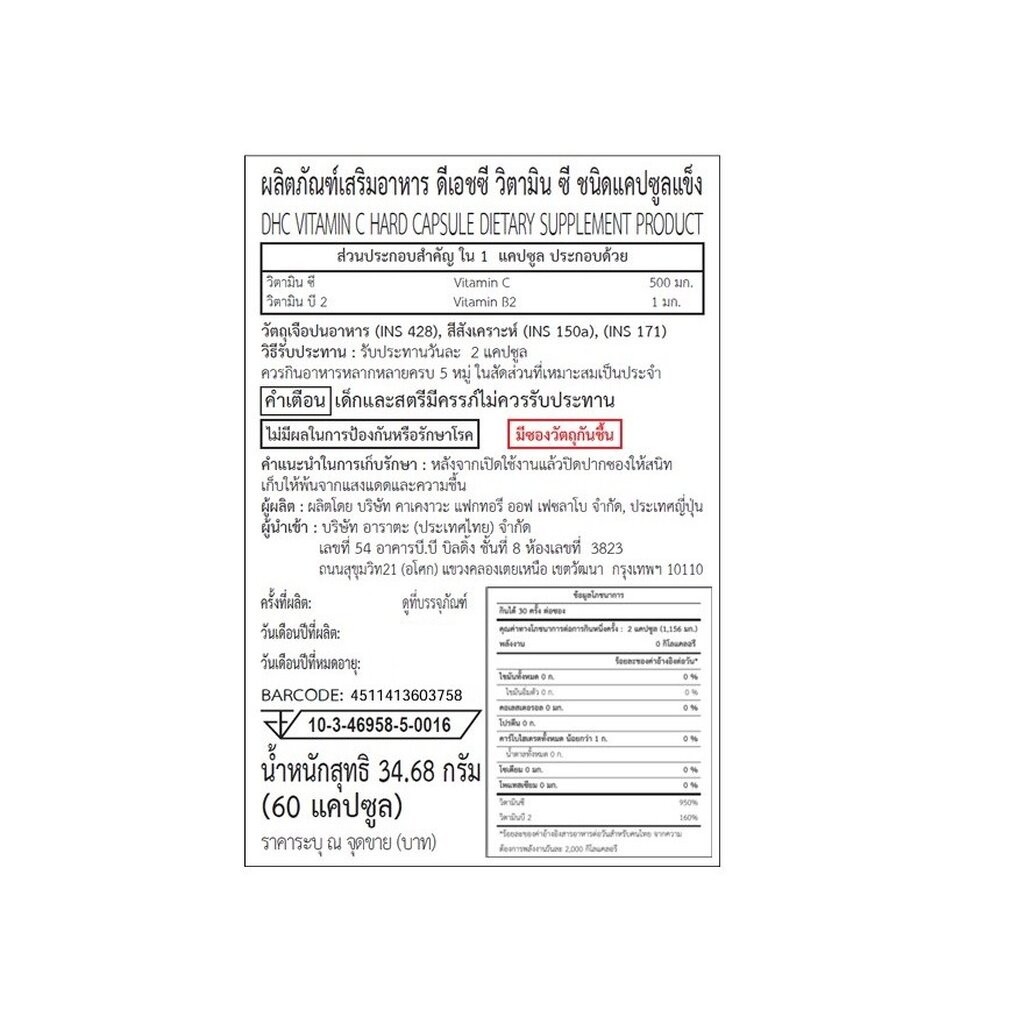DHC ดีเอชซี วิตามิน ซี ชนิดแคปซูลแข็ง 30 วัน (60 แคปซูล)