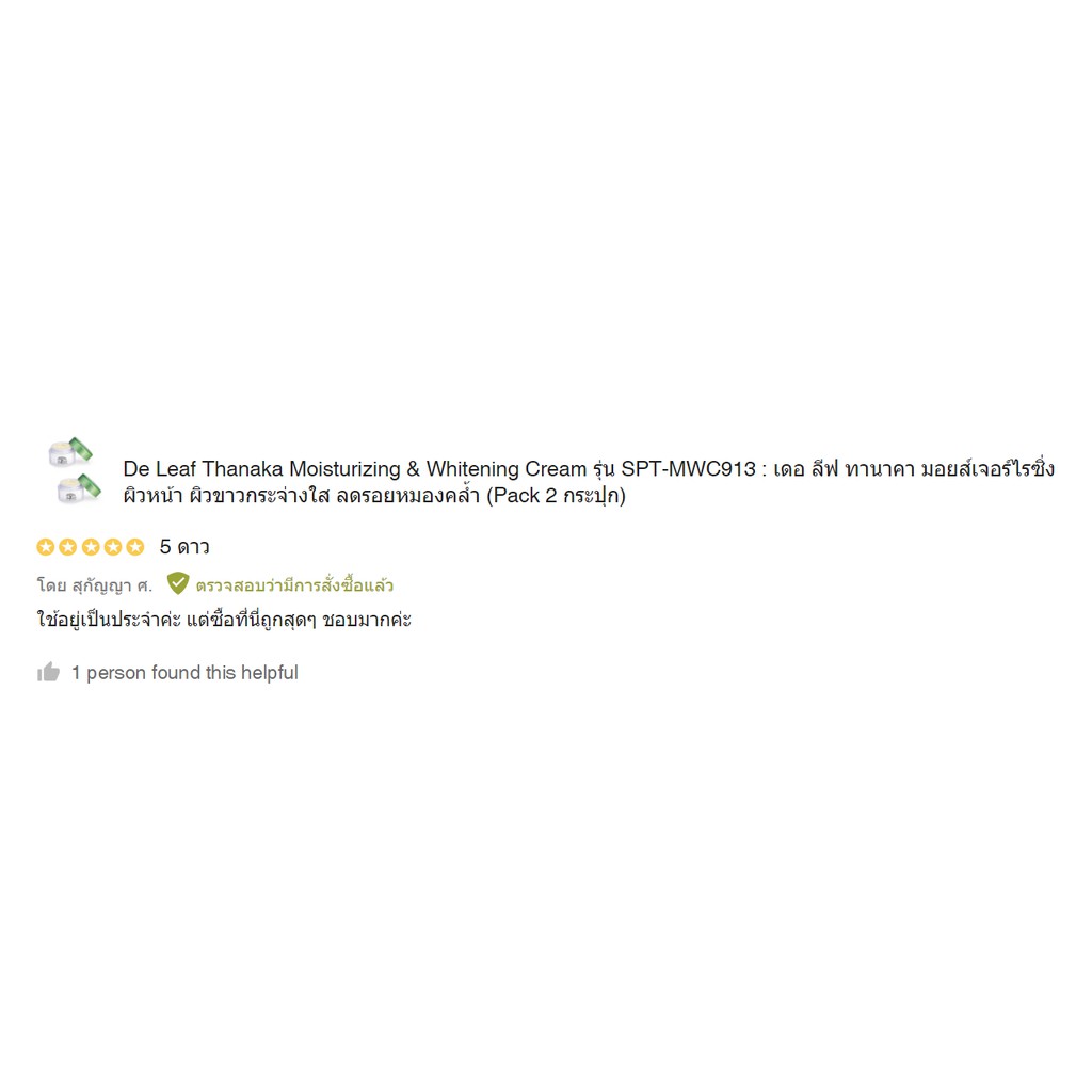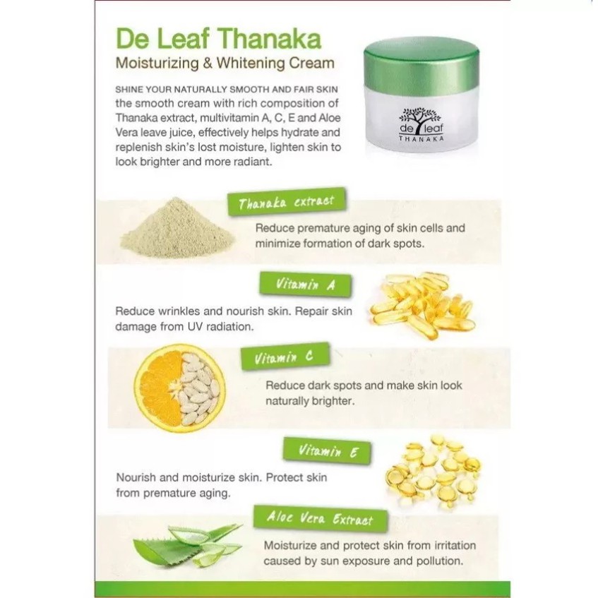 De Leaf Thanaka เดอ ลีฟ ทานาคา มอยส์เจอร์ไรซิ่ง แอนด์ ไวท์เทนนิ่ง ครีม ลดรื้วรอย ด่างดำ ปกป้องผิวจากแสงแดด SPT-MWC913