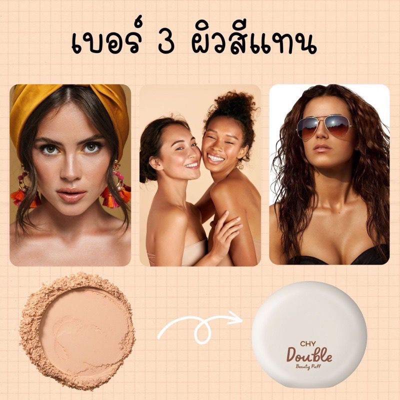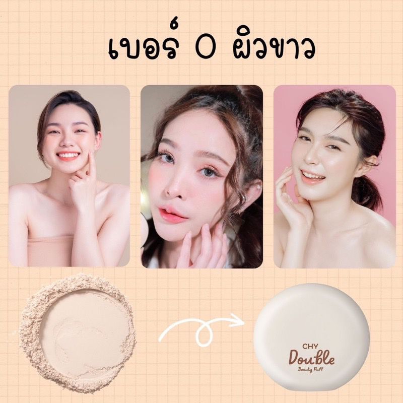 ส่งฟรี/มีไลฟ์ CHY แป้งพับchy ดับเบิ้ล บิวตี้ พัฟ DOUBLE BEAUTY PUFF แป้งตัวดังในตำนาน บางเบา เบลอรูขุมขนให้เรียบเนียน