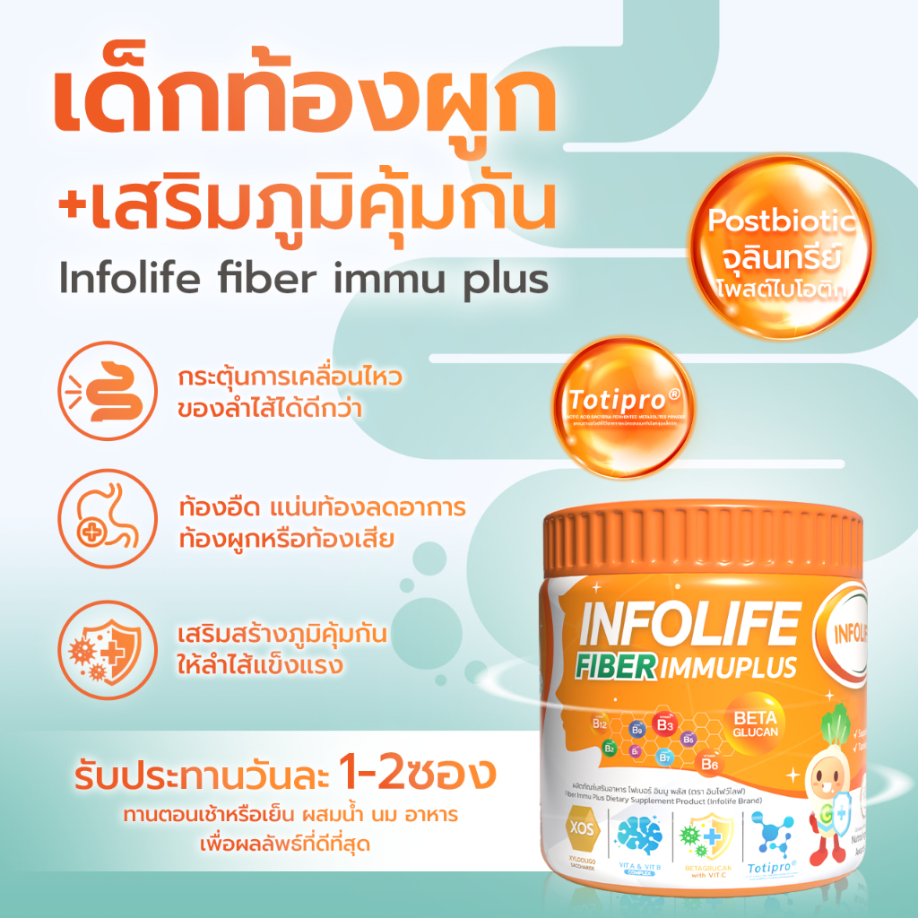 (2 กระปุก) อินโฟว์ไลฟ ไฟเบอร์ อิมมูพลัส +แคลเซียมใส โปรตีนสูง แก้ท้องผูก เพิ่มสูง เติบโตสมวัย สำหรับเด็ก ส่งฟรี