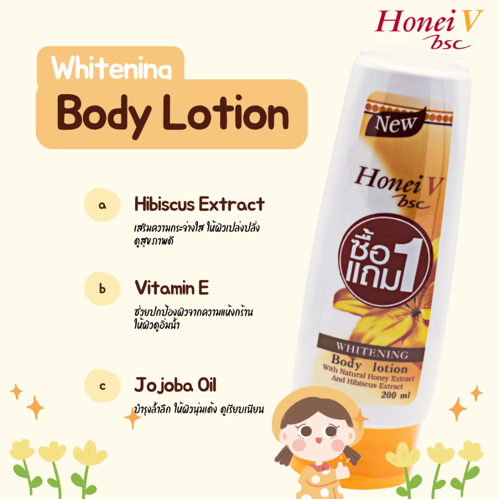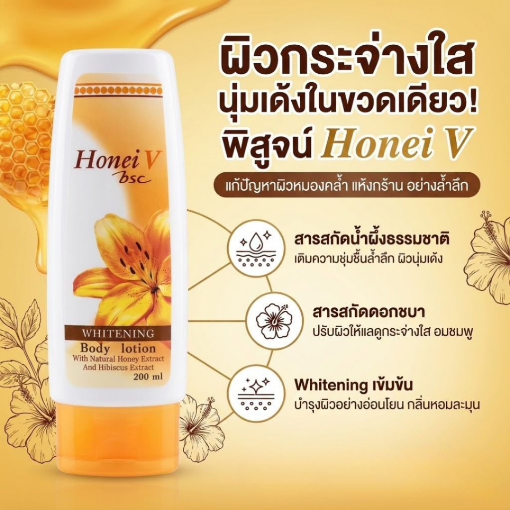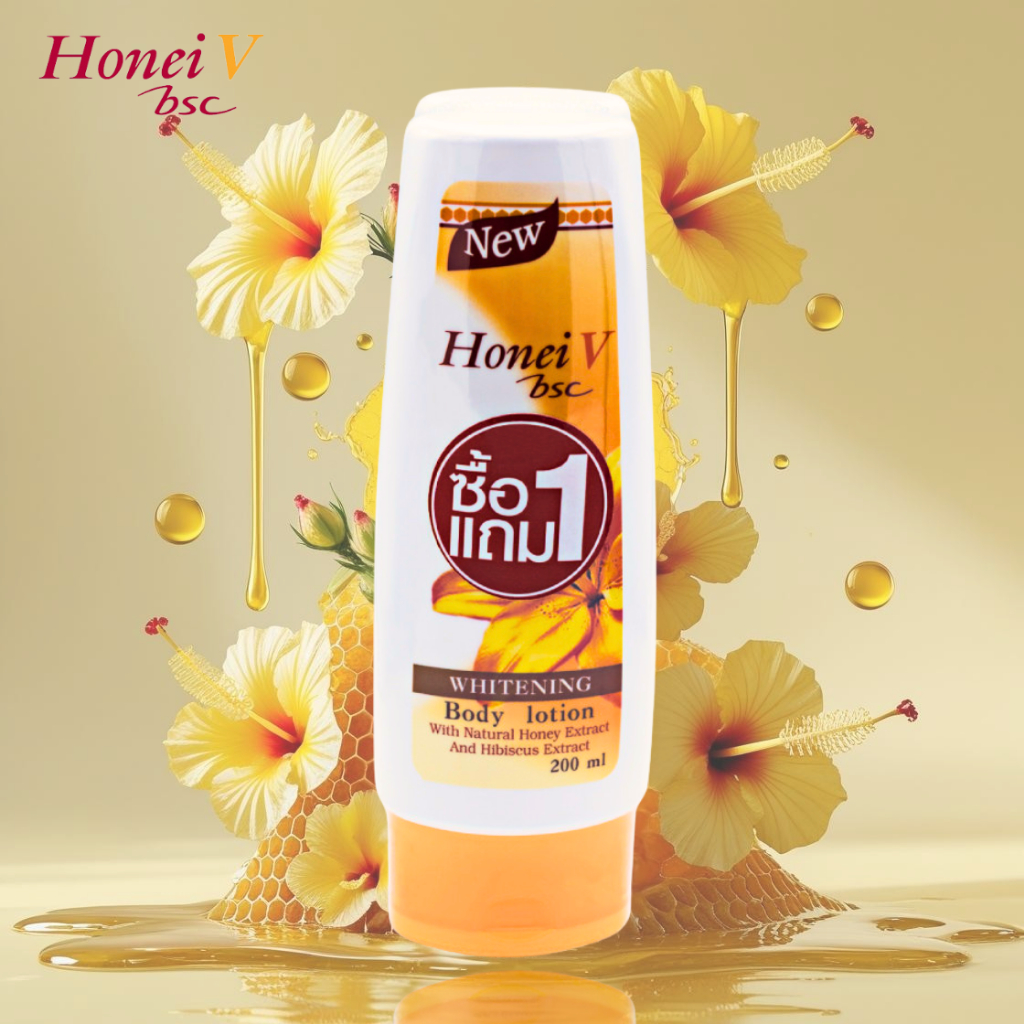 [1 แถม 1] HONEI V BSC โลชั่นบำรุงผิว WHITENING BODY LOTION DOUBLE PACK 200ml. ไฮบิสคัส & น้ำผึ้ง เพื่อผิวเนียนนุ่ม ใส