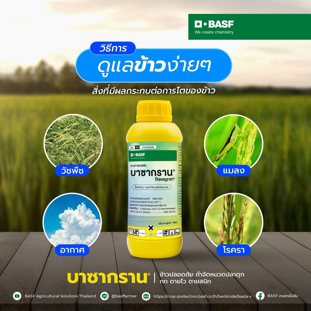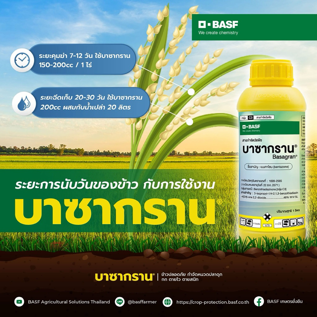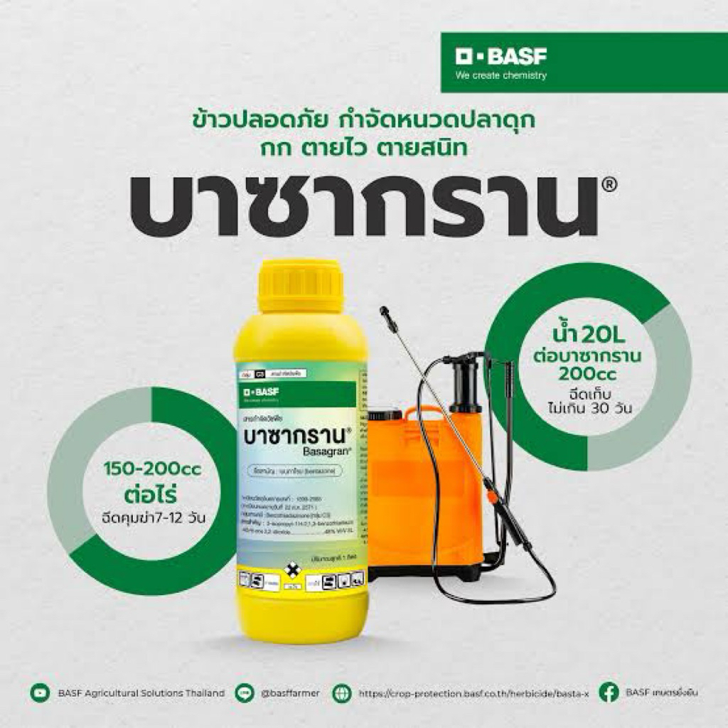 บาซากราน BASF เบนทาโซน กำจัด หนวดปลาดุก กก ข้าวไม่แดง ไม่อาน 1 ลิตร