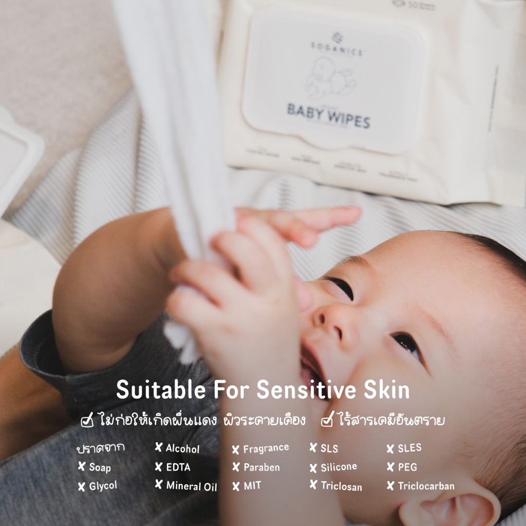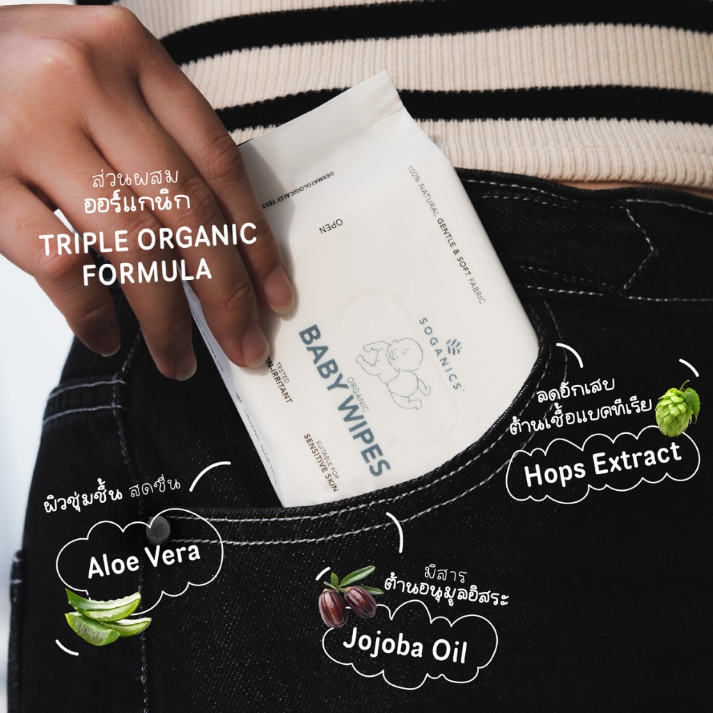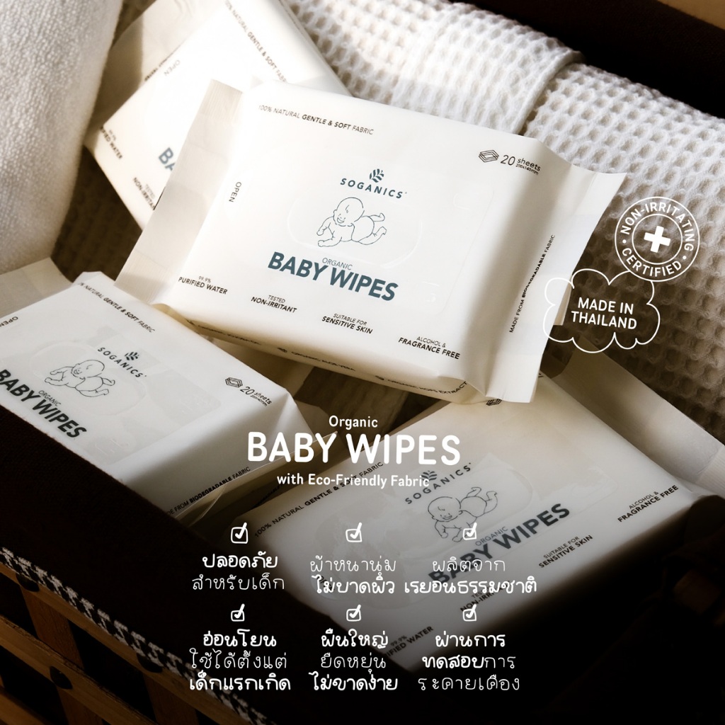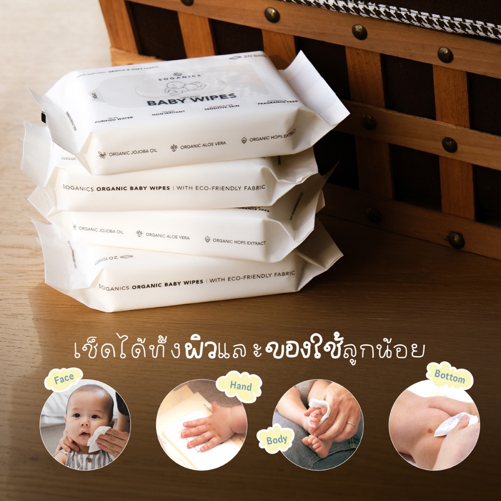 [ยกลัง 36 แพ็ค] SOGANICS Organic Baby Wipes (20 Sheets) ทิชชู่เปียก ผ้านุ่มละมุนจากใยธรรมชาติ