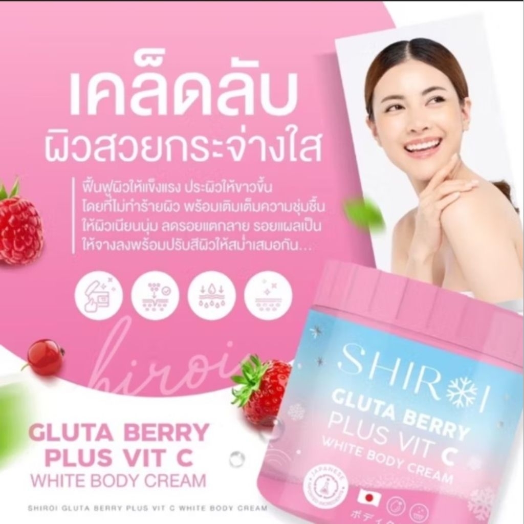 ชิโรอิ กลูต้า เบอร์รี่ ครีมบำรุงผิวกาย สูตรเนื้อเข้มข้น (แบบซอง 40กรัม)