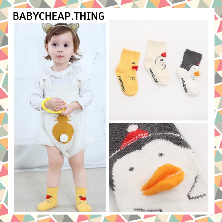SALE !! ถุงเท้าเด็ก (Sk10) - ข้อสูง เซทลูกไก่ 3 ลาย