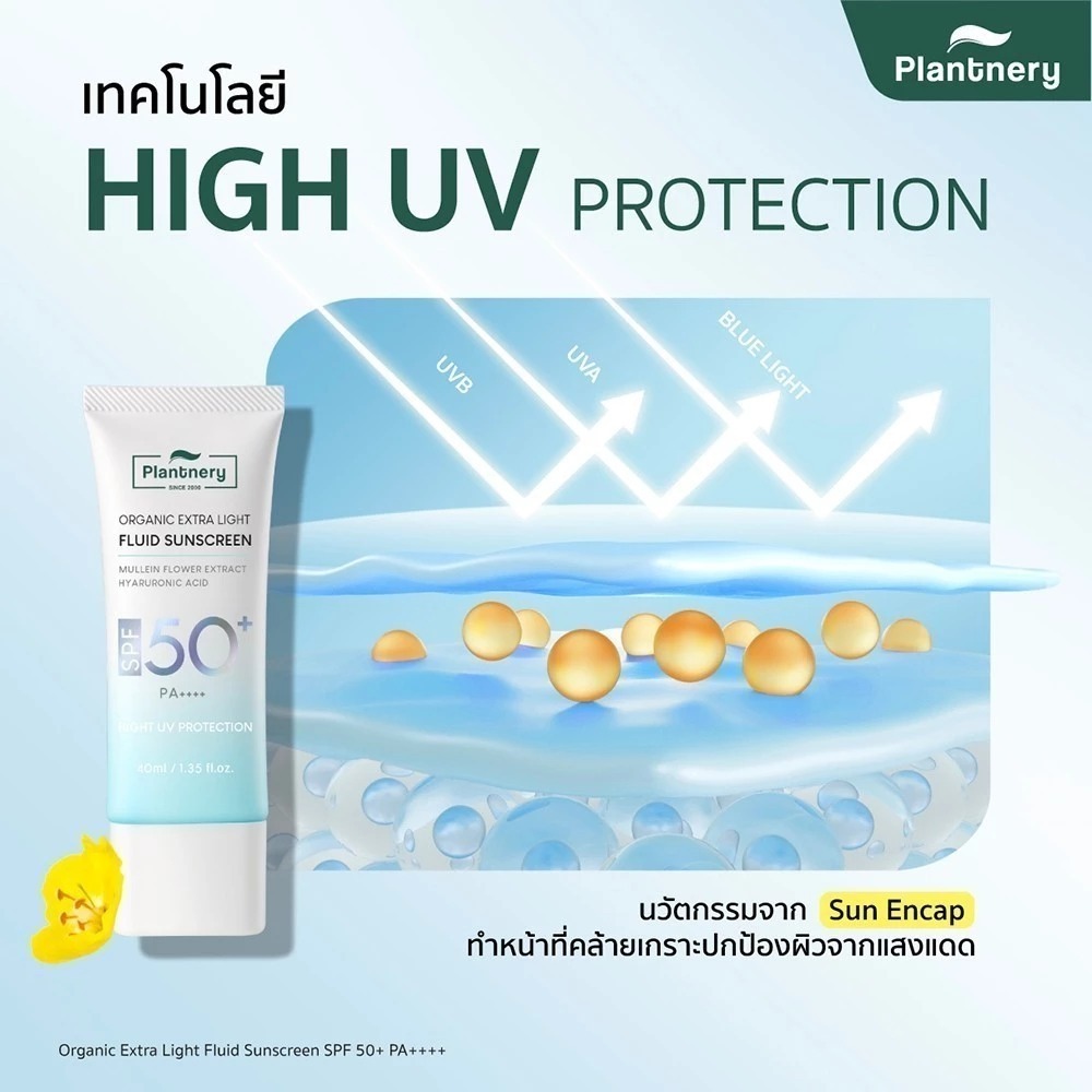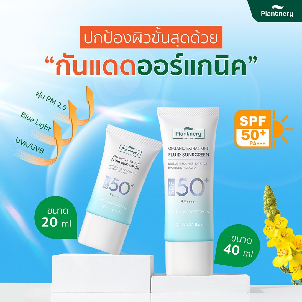 ถูก/แท้/มีไลฟ์ กันแดด Plantnery Organic Extra Light Fluid Sunscreen กันแดดออร์แกนิค กันแดดผิวหน้า บางเบา ซึมไว ไม่ลอย