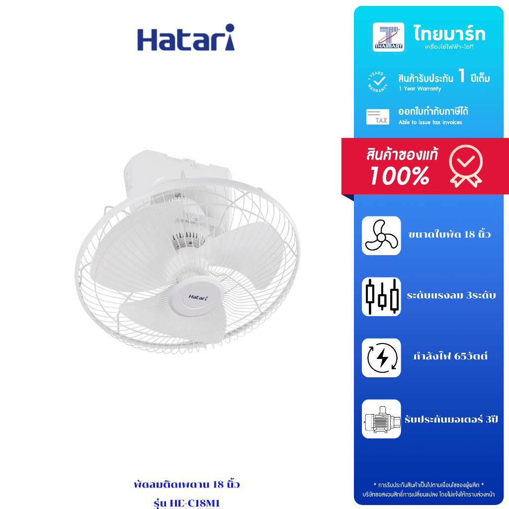 พัดลมติดเพดาน 18 นิ้ว HATARI HE-C18M1 รับประกันสินค้า 1 ปี