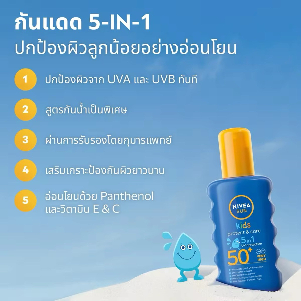 ถูกสุด! 169฿ แท้ Nivea นีเวีย ซัน คิดส์โพรเท็ค แอนด์ แคร์ 5อิน1 ยูวี โพรเทคชั่น เอสพีเอฟ50+ 200มล. สเปรย์ก ันแดดเด็ก