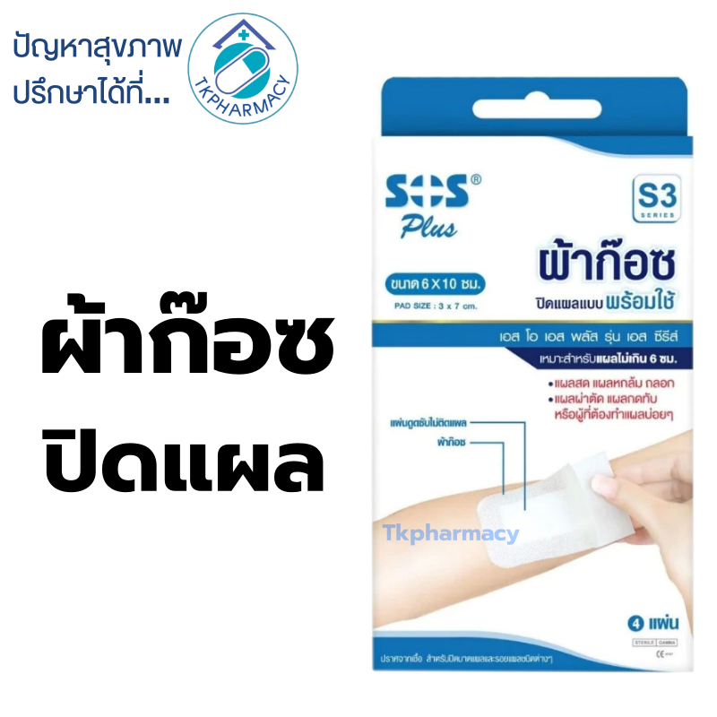ผ้าก๊อซ SOS S3 Plaster 6cm x 10cm 4 ชิ้น
