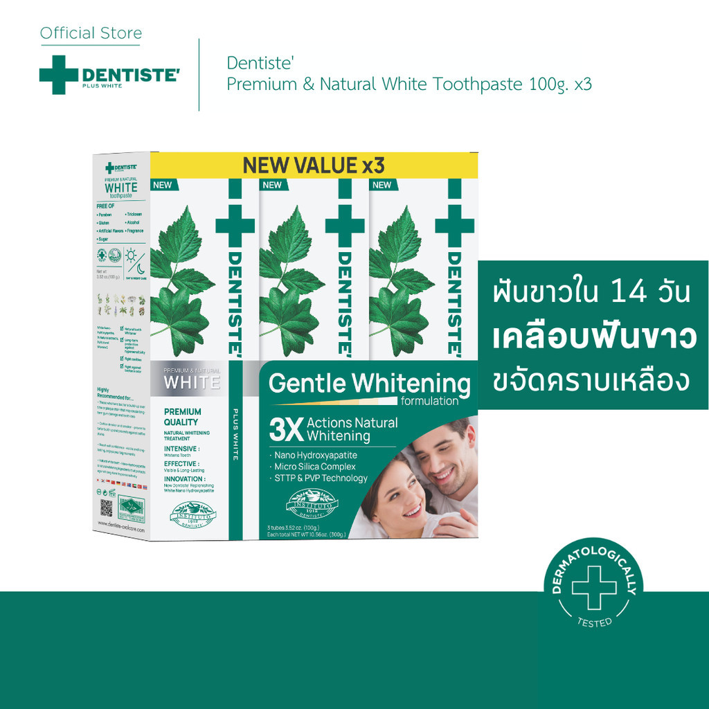 [แพ็คสุดคุ้ม3ชิ้น] Dentiste' Premium & Natural White Toothpaste 100g. ยาสีฟันสูตรเคลือบฟันขาวใน 14 วัน ขจัดคราบเหลือง