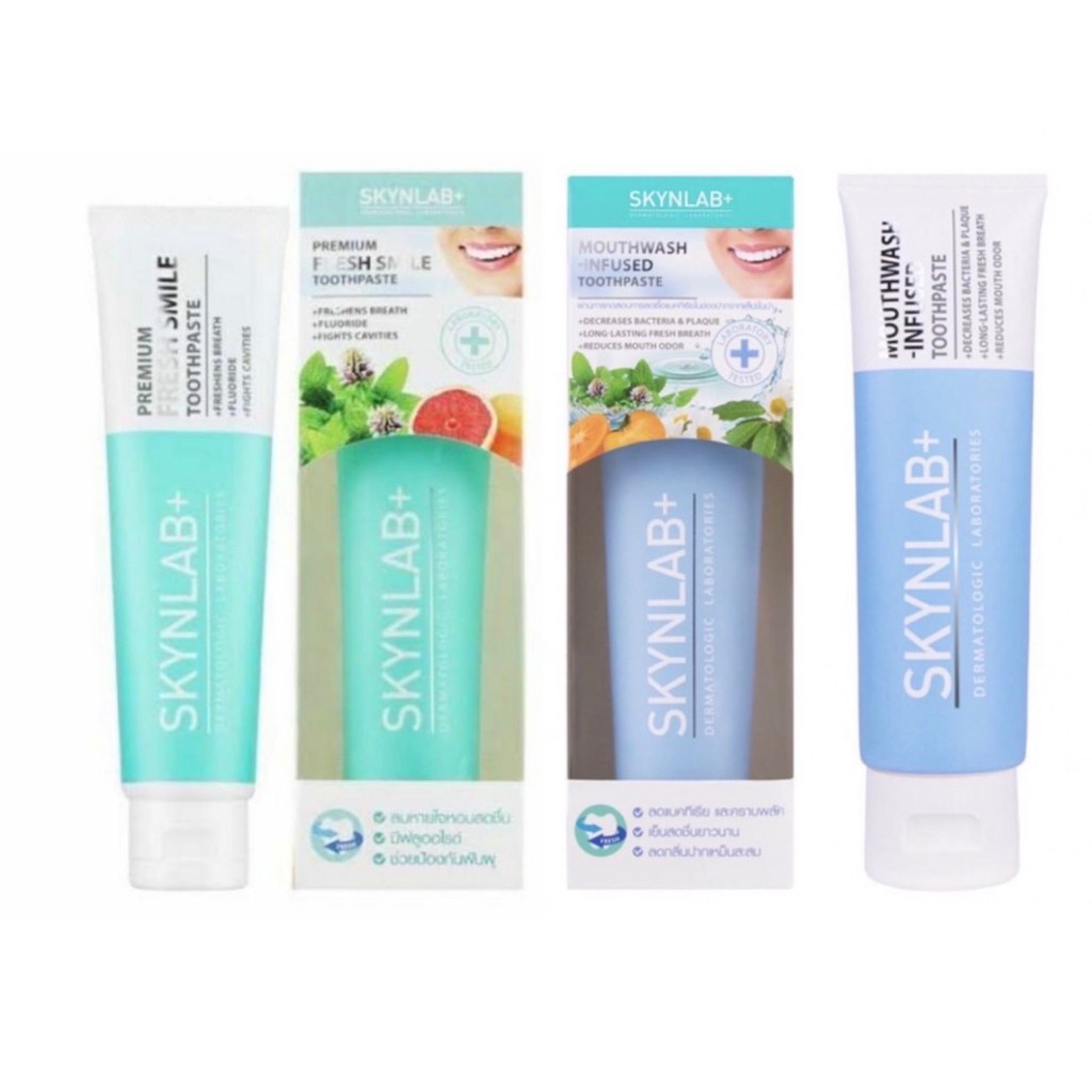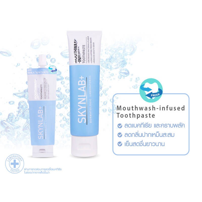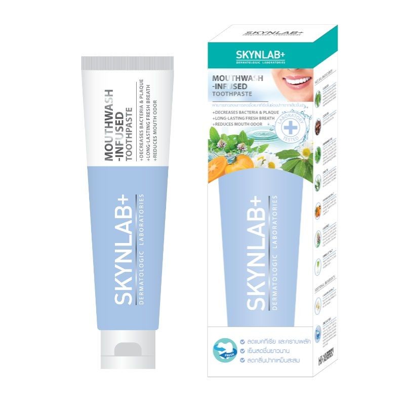 ยาสีฟันสีฟ้า SKYNLAB ยาสีฟันเม้าท์วอชอินฟิวซ์ 100g.สูตร 2in1