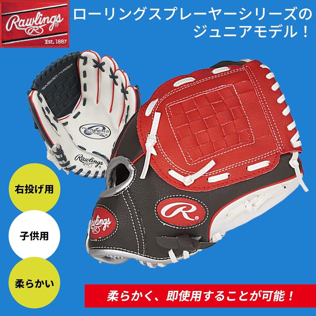 ถุงมือเบสบอล Rawlings Jr. ถุงมือเล่น US Player Series ขวา 10"/11" กีฬาในญี่ปุ่น