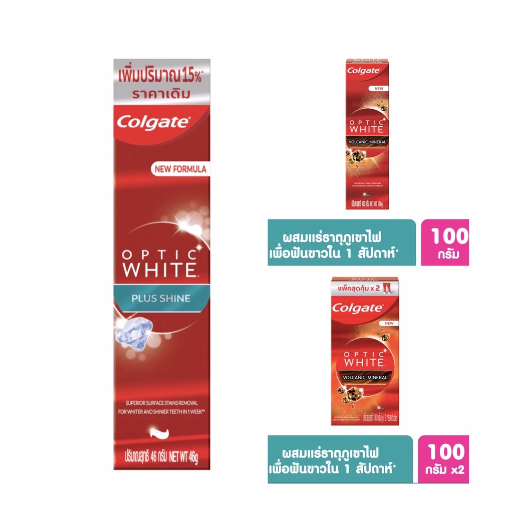Colgate คอลเกตยาสีฟัน อ๊อฟติค ไวท์ โวลคานิค มิเนอรัล 46-100 กรัม ช่วยให้ ฟันขาว อย่างเป็นธรรมชาติ