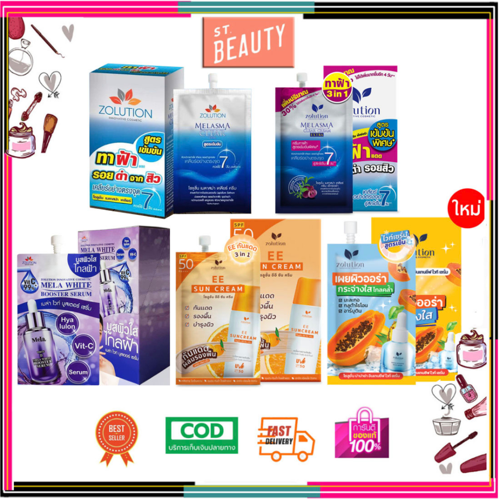 [♥️แท้/1กล่อง6ซอง] Zolution cosmetic melasma clear ครีมทาฝ้า หน้าขาว ลดรอยสิว ด่างดำ สูตรเข้มข้น +EE +Papaya+Booter