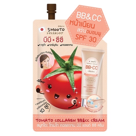 (1ซอง) Smooto Tomato Collagen ( SerumX10 , บีบี ซีซี SPF30 , BB & CC SPF50 )
