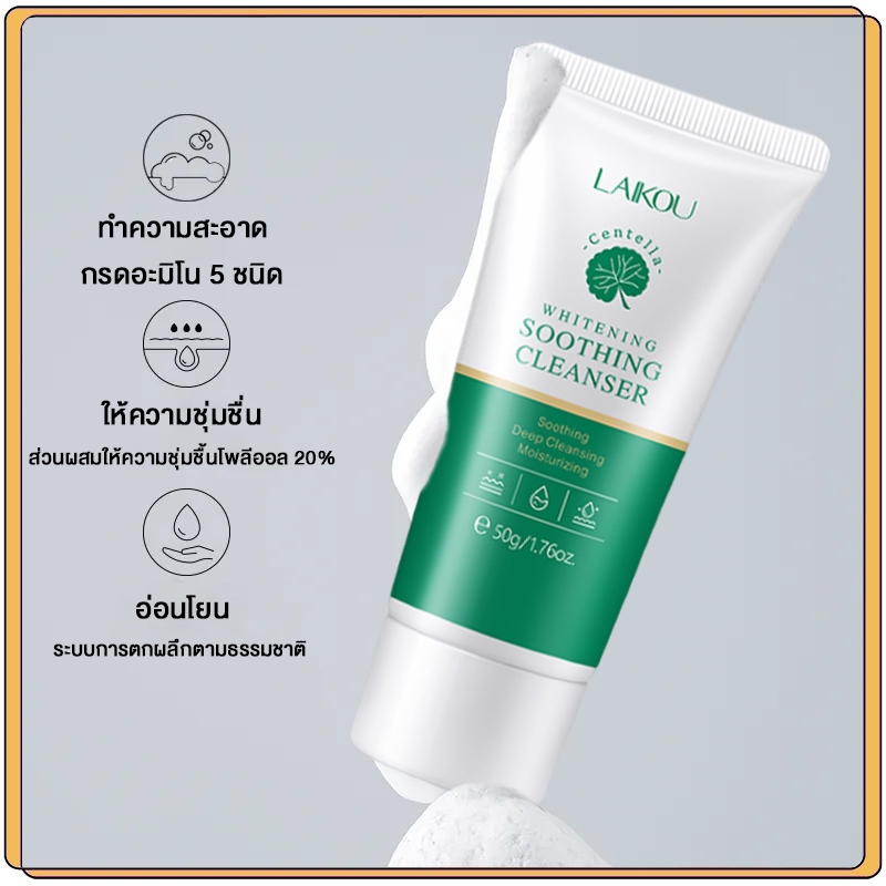 รูขุมขนกระชับ ผิวดี โฟมล้างหน้า LAIKOU โฟมล้างหน้าสูตรเจลสำหรับคนมีสิว ผิวแพ้ง่าย เจลล้างหน้า ลดสิว คลีนซิ่ง