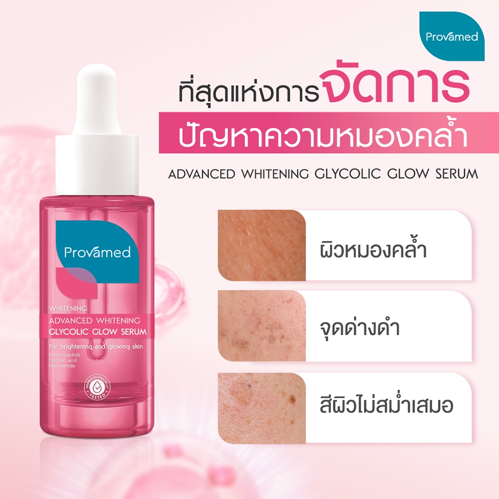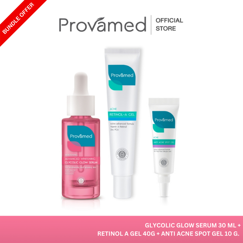 [SET ผิวกระจ่างใสไร้สิว] PROVAMED GLYCOLIC GLOW SERUM 30 ML, RETINOL-A GEL 40 G, ANTI ACNE SPOT GEL 10 G