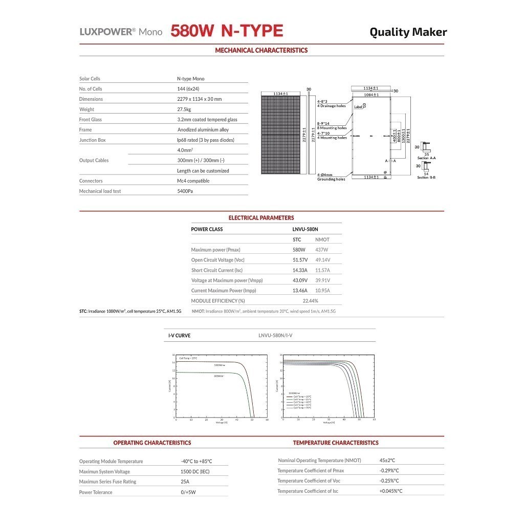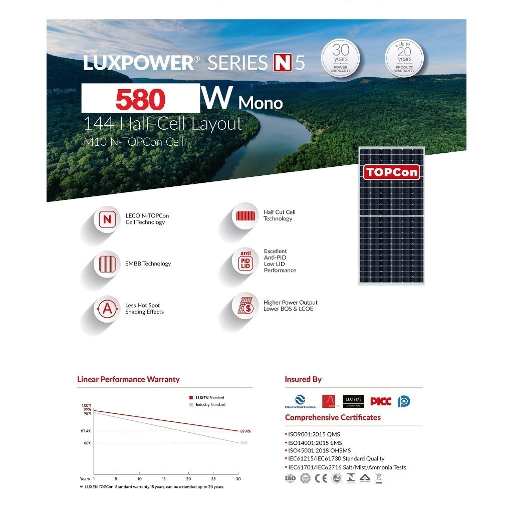 LUXEN แผงโซลาร์เซลล์ 580 วัตต์ N-TYPE MONO HALF CELL TIER1 จัดส่งโดย HomePro