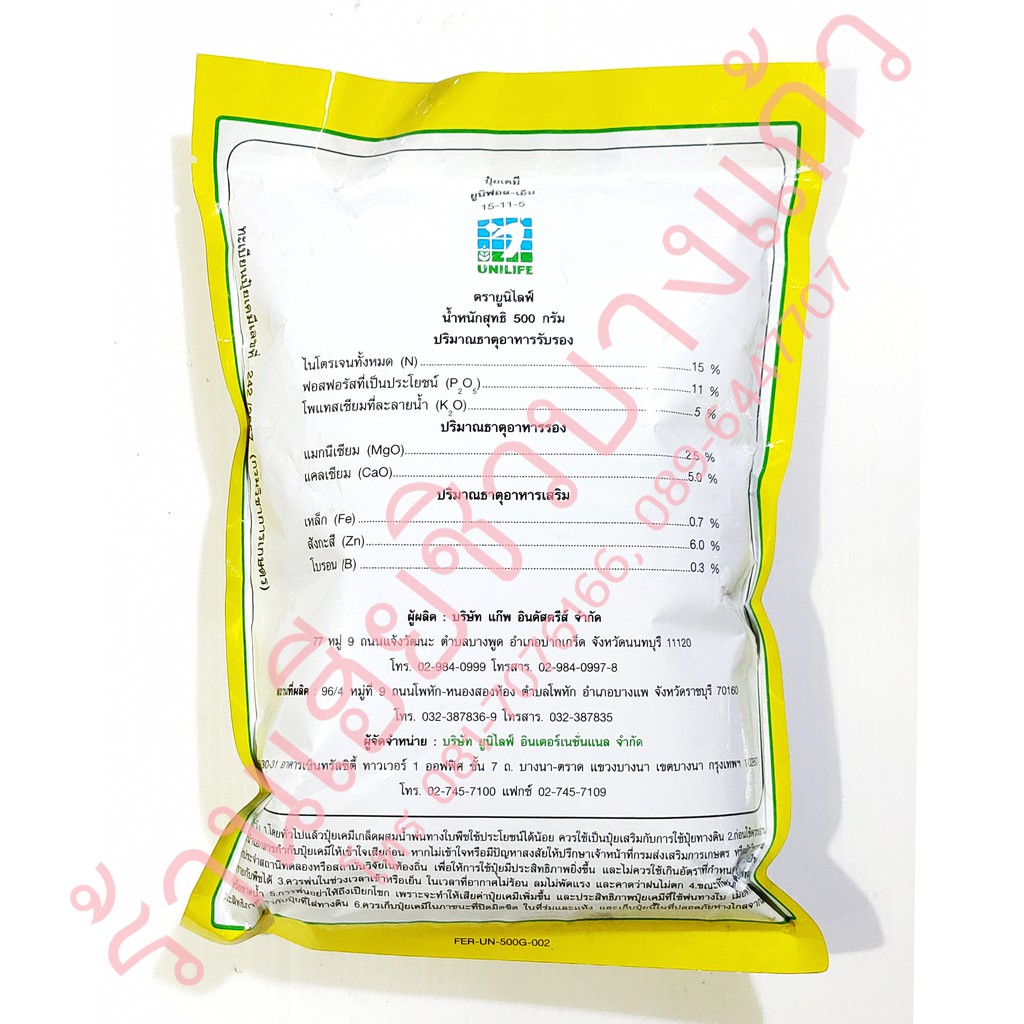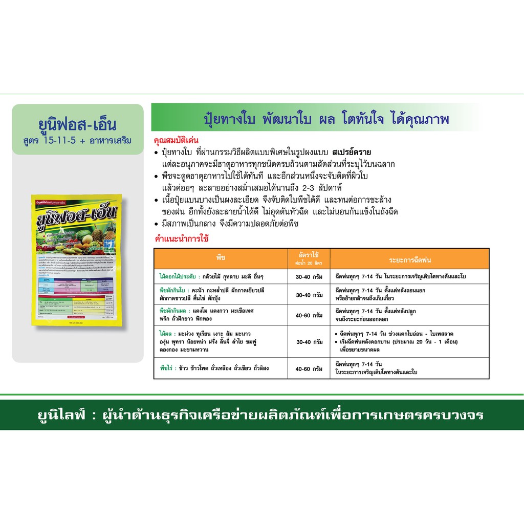 ปุ๋ยเคมีสำหรับพ่นทางใบ ยูนิฟอส-เอ็น สูตร 15-11-5 (500 กรัม) ยูนิไลฟ์