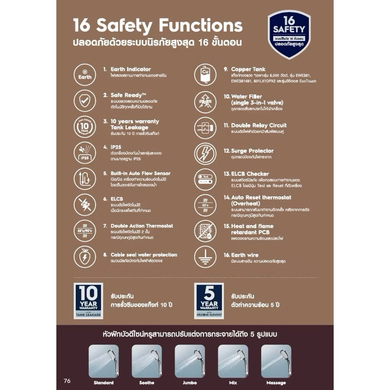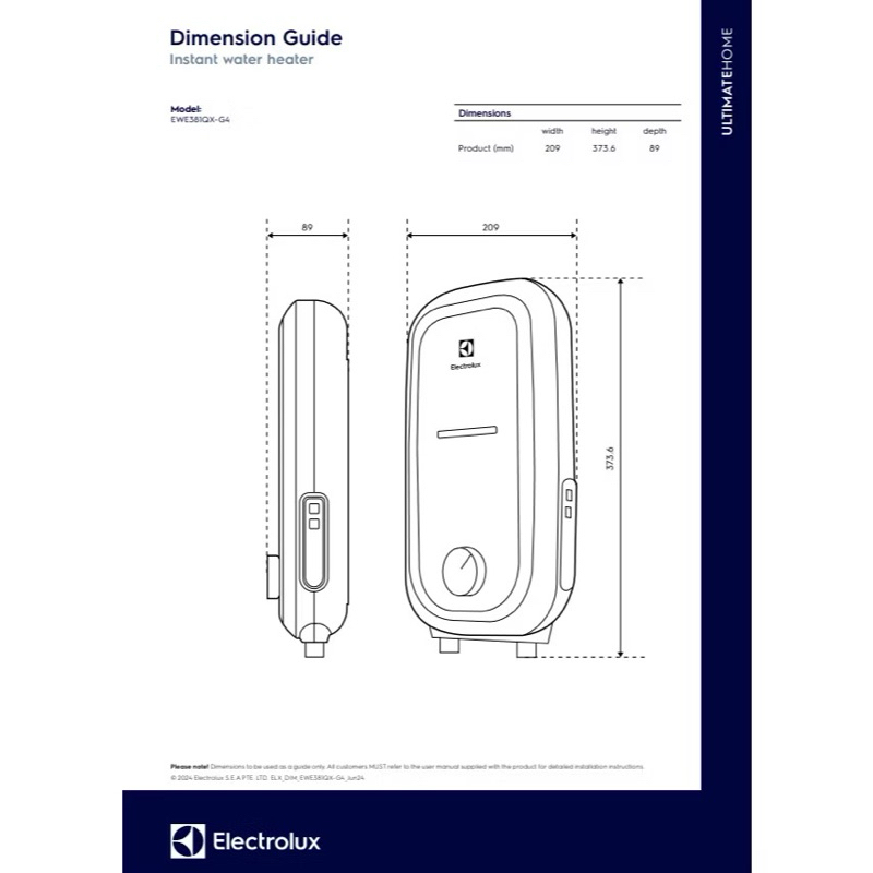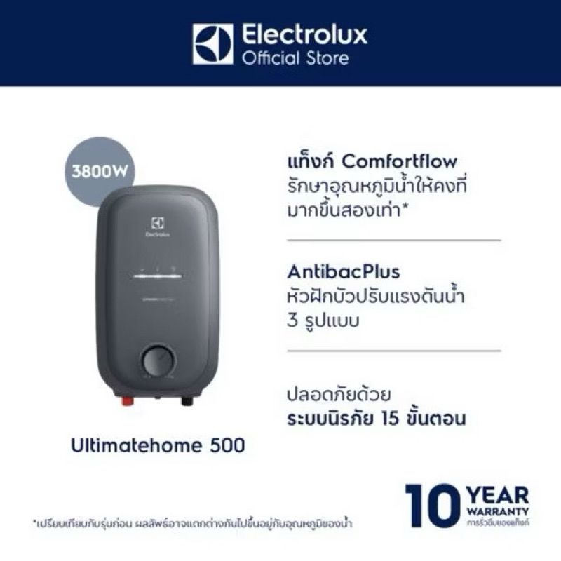 เครื่องทำน้ำอุ่น รุ่น UltimateHome 500 แท็งก์น้ำ ComfortFlow กำลังไฟ 3.8 กิโลวัตต์ ยี่ห้อ Electrolux รุ่น EWE381QX-G4