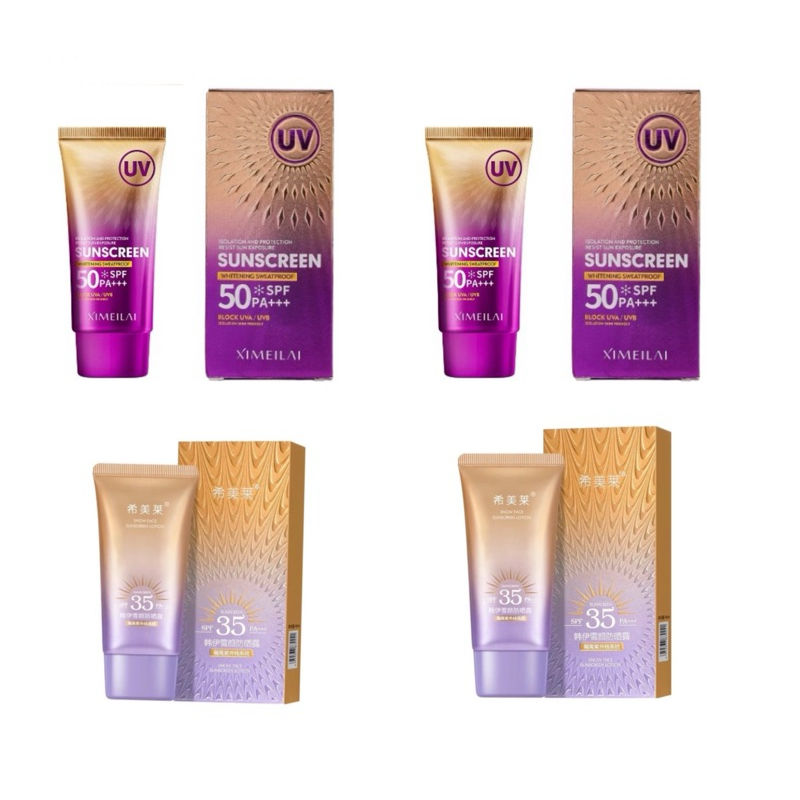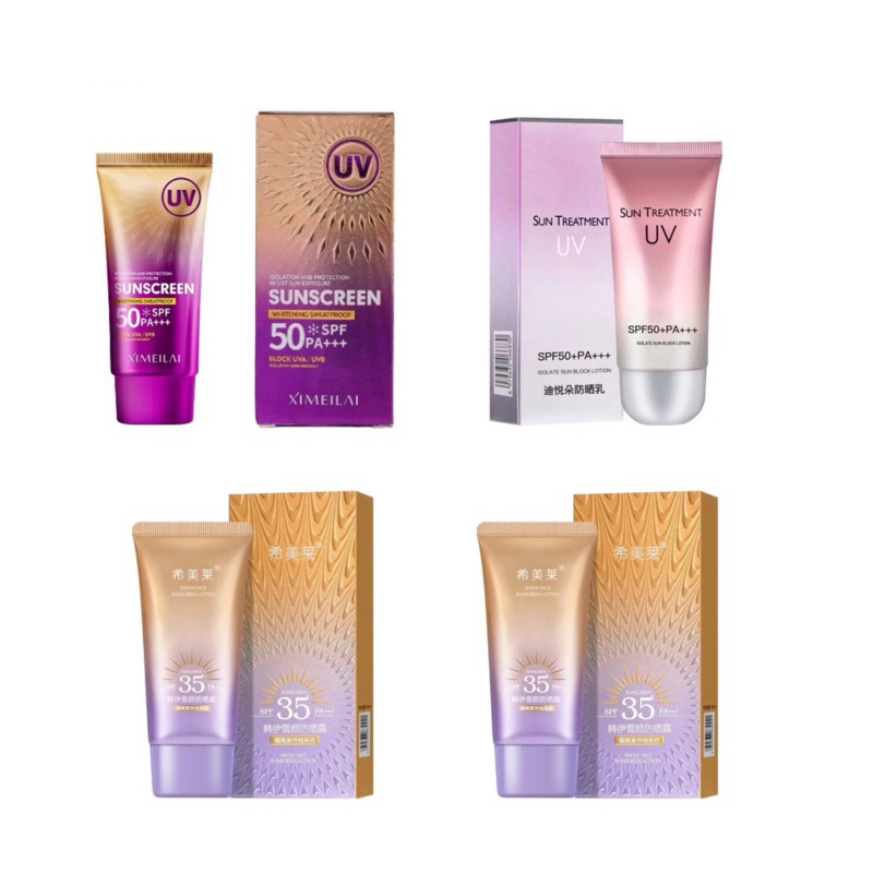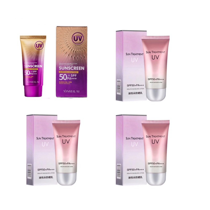 ครีมกันแดด 4 และ 5 สูตรใหม่ SPF 50PA++ คุมมันกันน้ำ กันเหงื่อ เนื้อครีมบางเบา เกลี่ยง่ายไม่เหนียวเหนอะหนะ