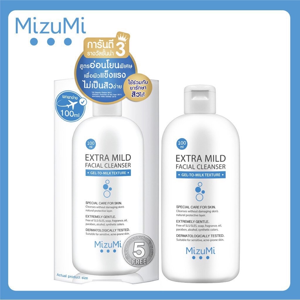 MizuMi Extra Mild Facial Cleanser มี 2 ขนาด 100ml / 500ml เอ็กซ์ตรา ไมลด์ เจลล้างหน้า อ่อนโยนพิเศษ