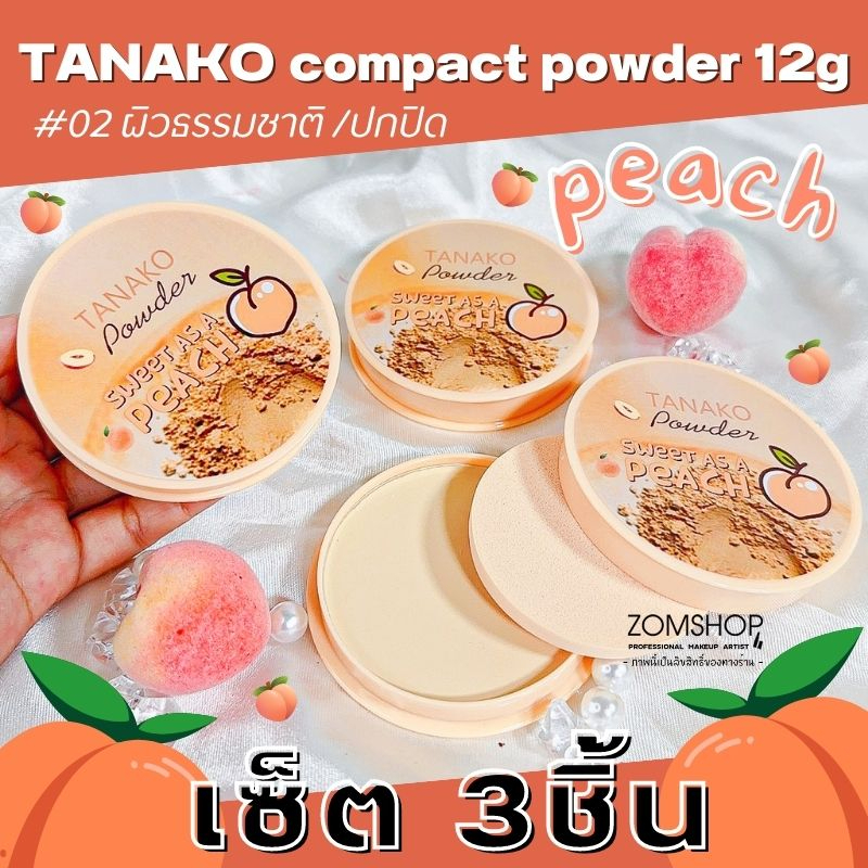 【เซ็ต3ชิ้น】 🍑แป้งตลับลูกพีช🍑 แป้งพัฟผสมรองพื้น【กันน้ำ คุมมัน ปกปิดรูขุมขน】TANAKO POWDER SWEET PEACH 12G.