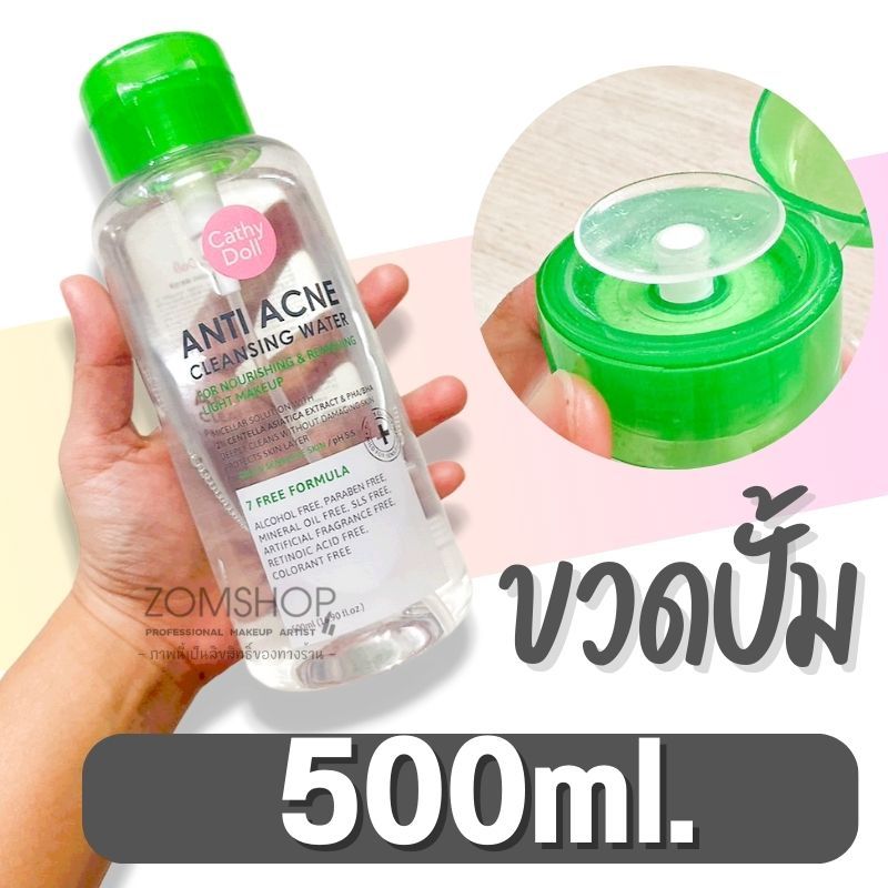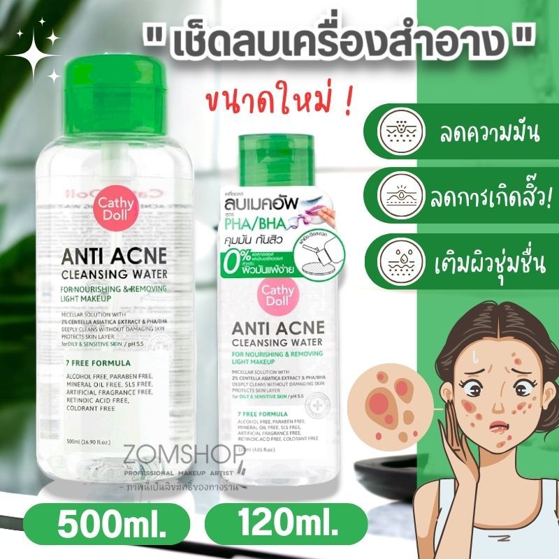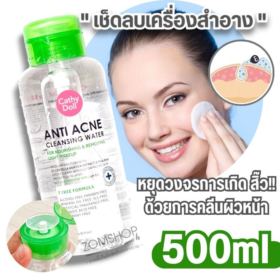 Cathy Doll【ขวดสีเขียว】เช็ดเครื่องสำอาง คลีนซิ่ง ลดมัน แพ้ง่าย Cathy Doll Anti Acne Cleansing Water