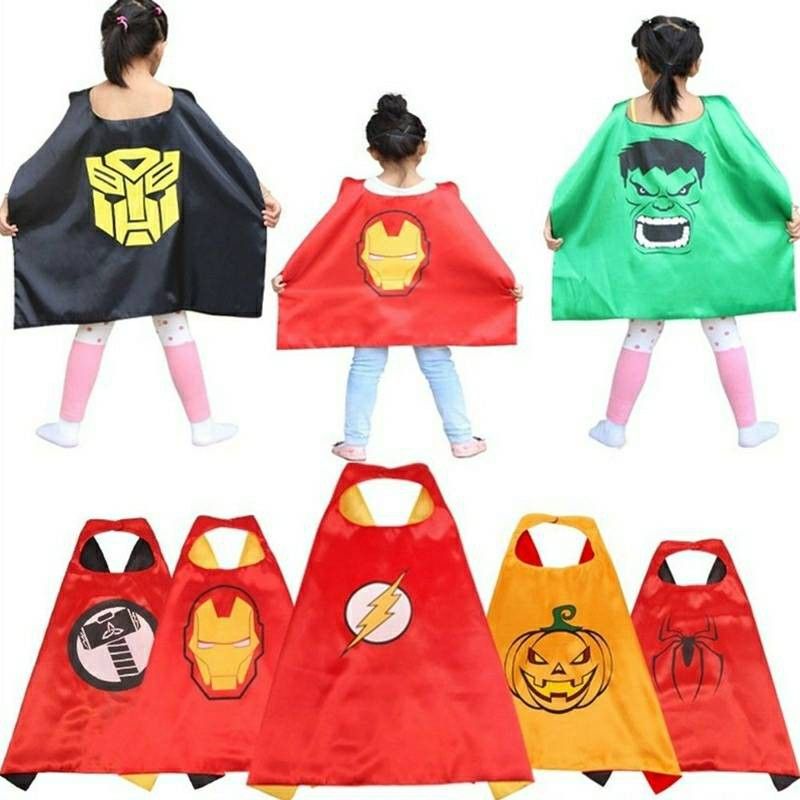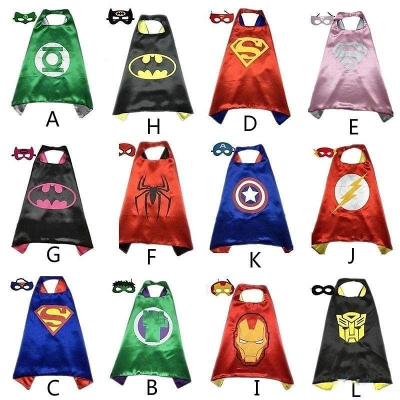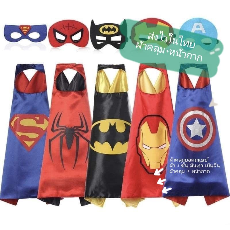 เซตผ้าคลุมซุปเปอร์ฮีโร่ + หน้ากาก ส่งไวในไทย 70*70 ซม.ผู้ใหญ่ใส่ได้ประมาณเอว 70*70 ซม. แบตแมน ซุปเปอร์แมน