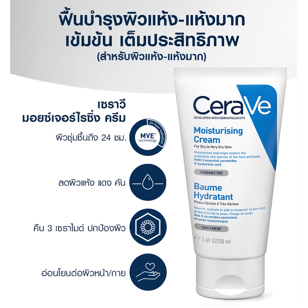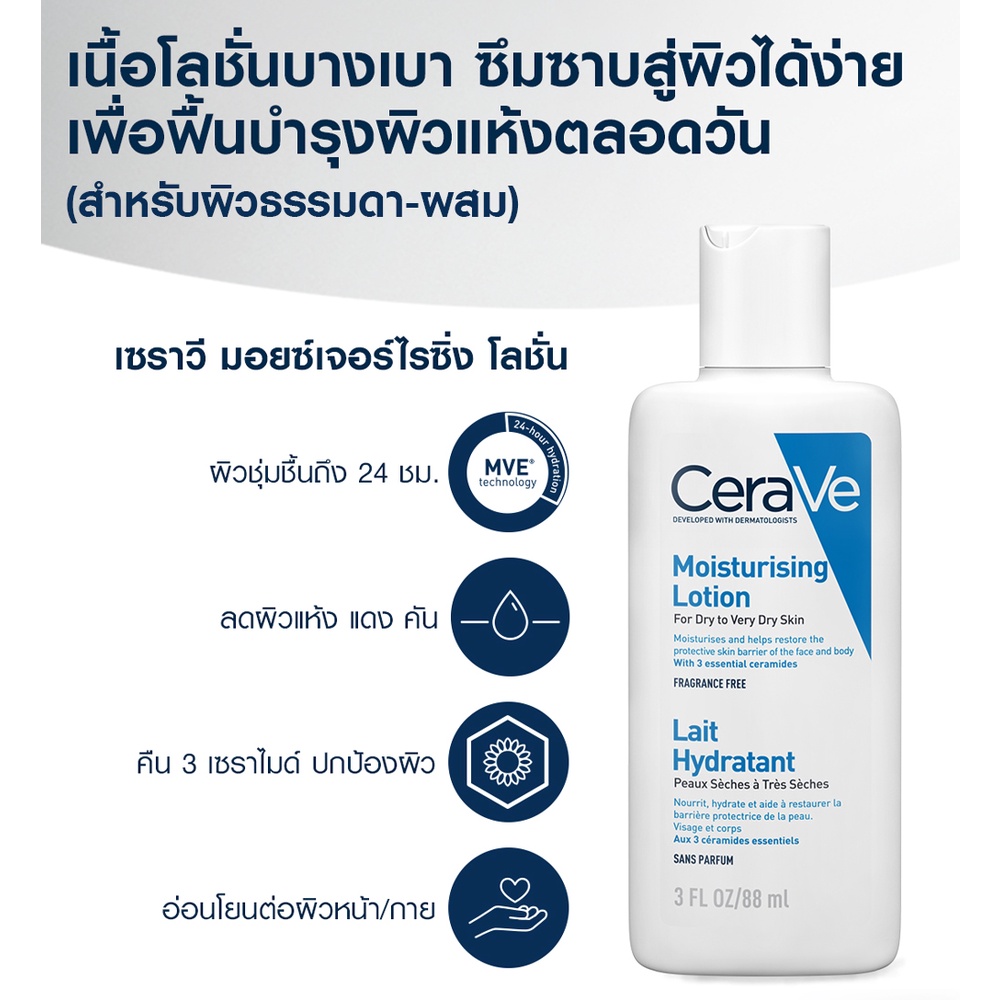 แท้/ฉลากไทย CeraVe Moisturizing Cream 50g. / Lotion 88ml. เซราวี ครีม 50กรัม / โลชั่น 88 มิล. บำรุงผิวหน้าและผิวกาย