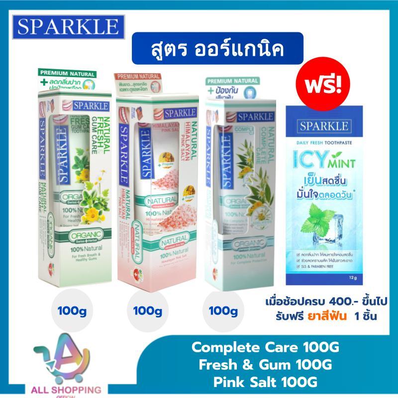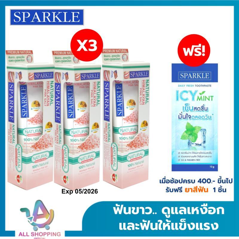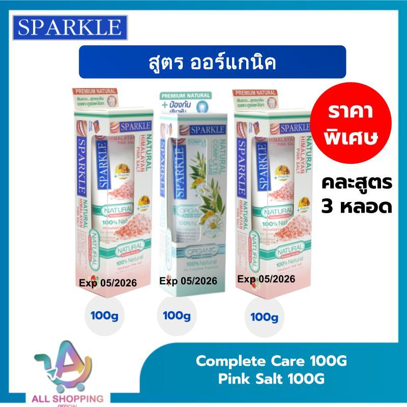 [3 หลอด] SPARKLE ยาสีฟัน 100 กรัม Exp. 05/26 complete care / pink satl / natural fresh & Gum