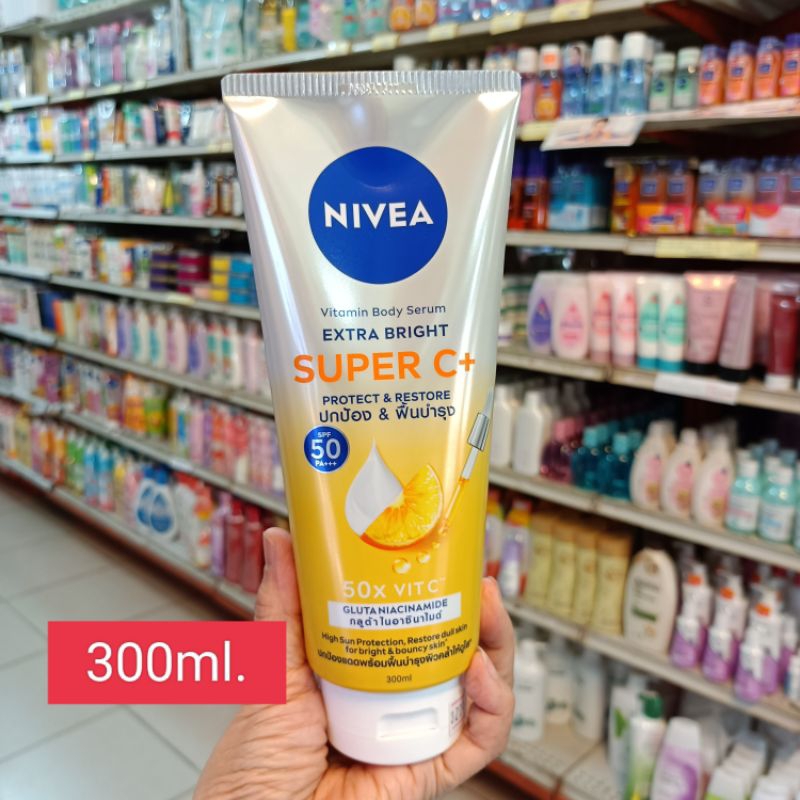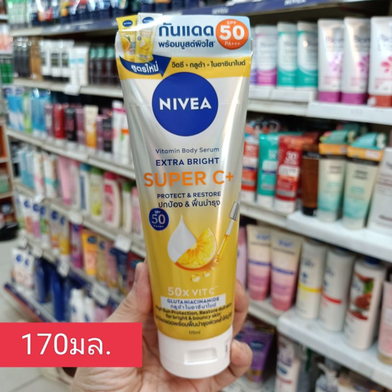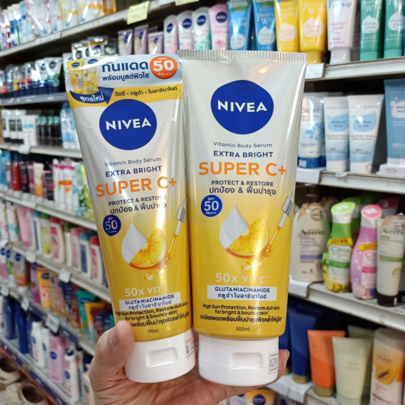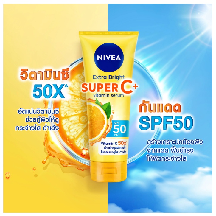🌟 วิตามิน เซรั่มบำรุงผิวกาย ผสานกันแดด นีเวีย NIVEA EXPTRA BRIGHT SUPER C+ VITAMIN SERUM SPF50 PA+++