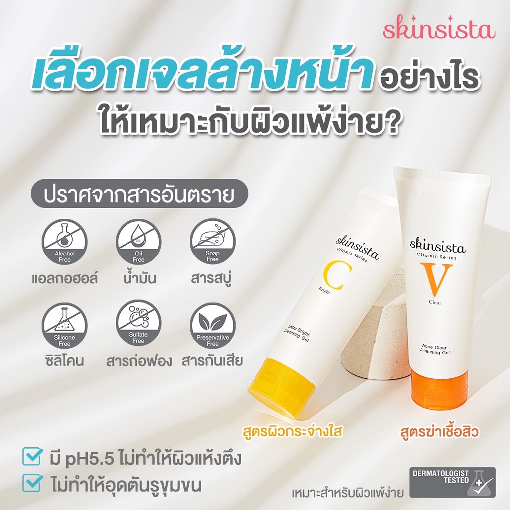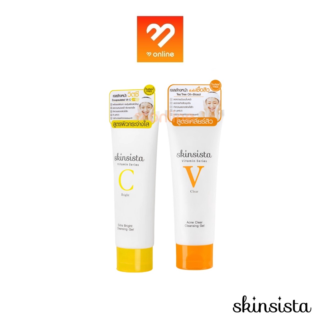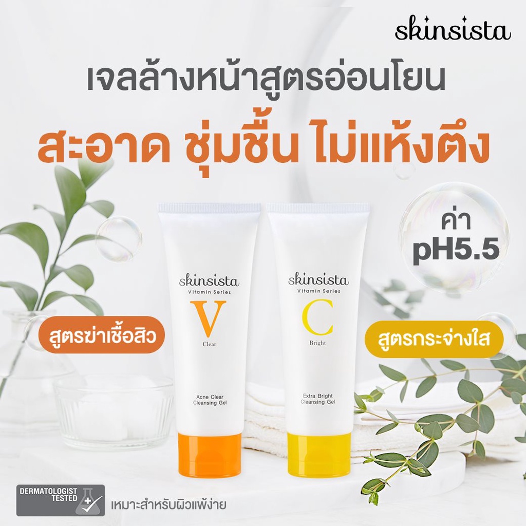 Skinsista Vit C Bright / V Clear Cleansing Gel 100ml. สกินซิสต้า คลีนซิ่ง เจล เจลล้างหน้าสูตรอ่อนโยน