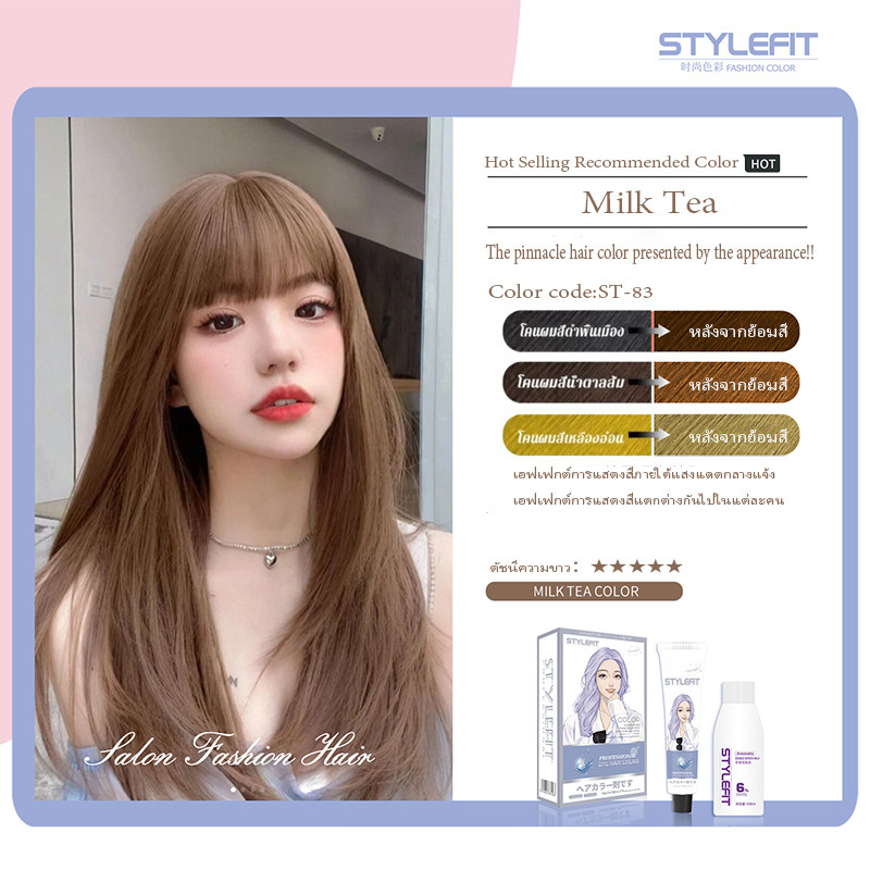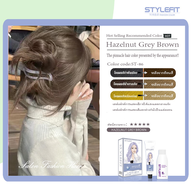 สีป้องกันสีย้อมผมปราศจากแอมโมเนียผลิตภัณฑ์ทำผมปกผมขาวเฮเซลนัทสีเทาสีน้ำตาลครีมย้อมผมยอดนิยม stylefit