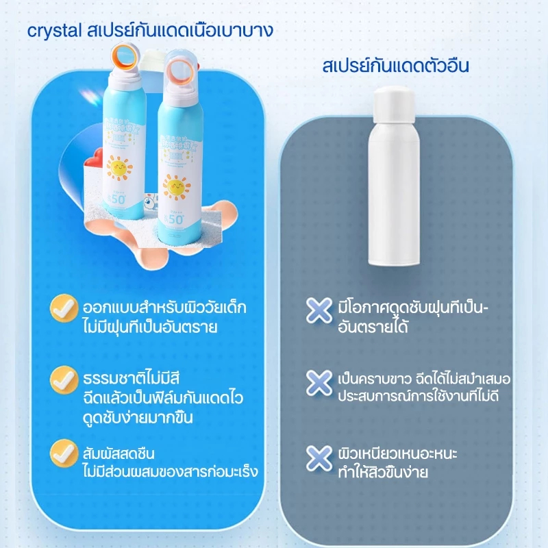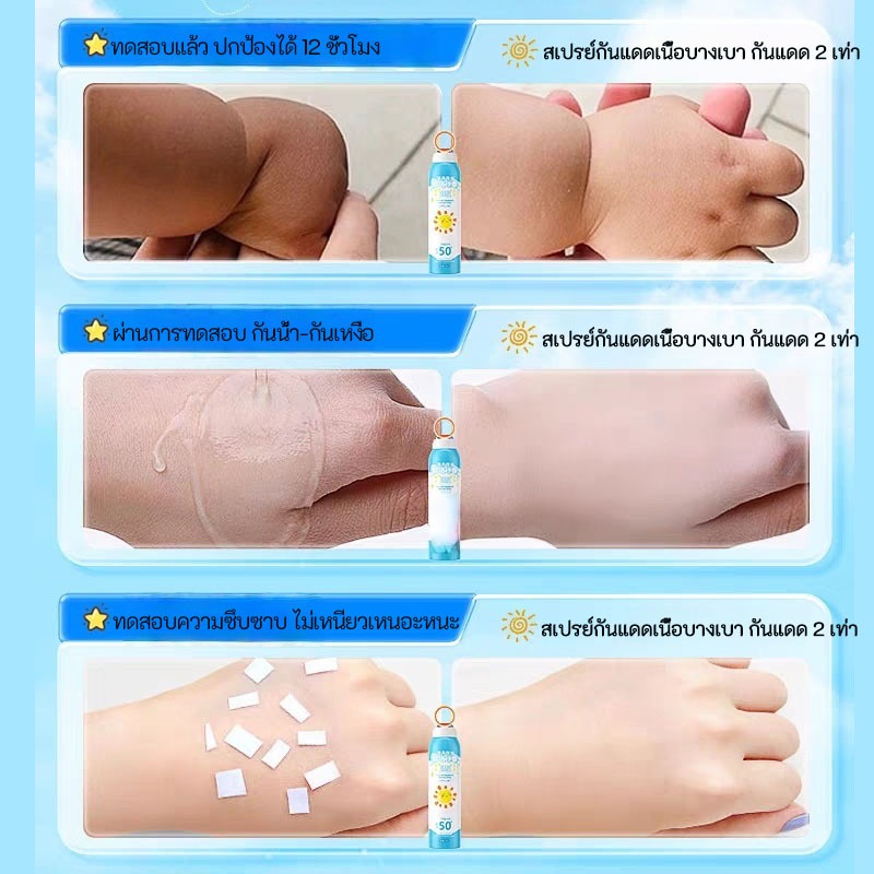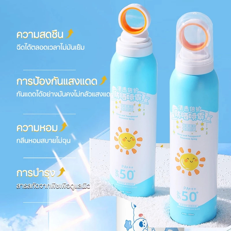 🔥[ลดแรง] สเปรย์กันแดดเด็ก ครีมกันแดดเด็ก SPF50+ PA+++ กันน้ำ-กันเหงื่อ 150ml ทาว่ายน้ำได้ สูตรอ่อนโยน Sunscreen