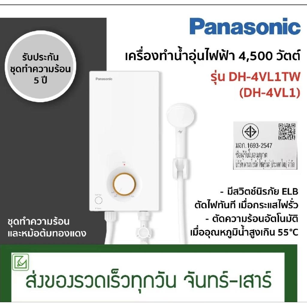 รุ่นใหม่ล่าสุด#เครื่องทำน้ำอุ่น Panasonic DH-4VL1TW