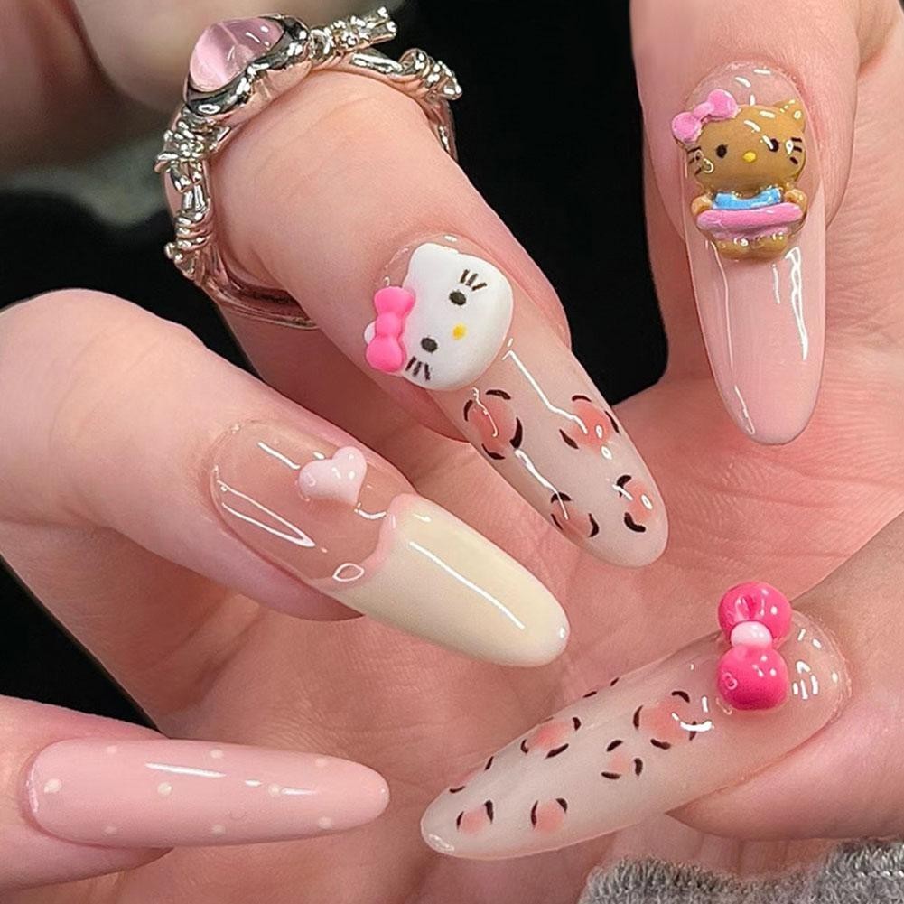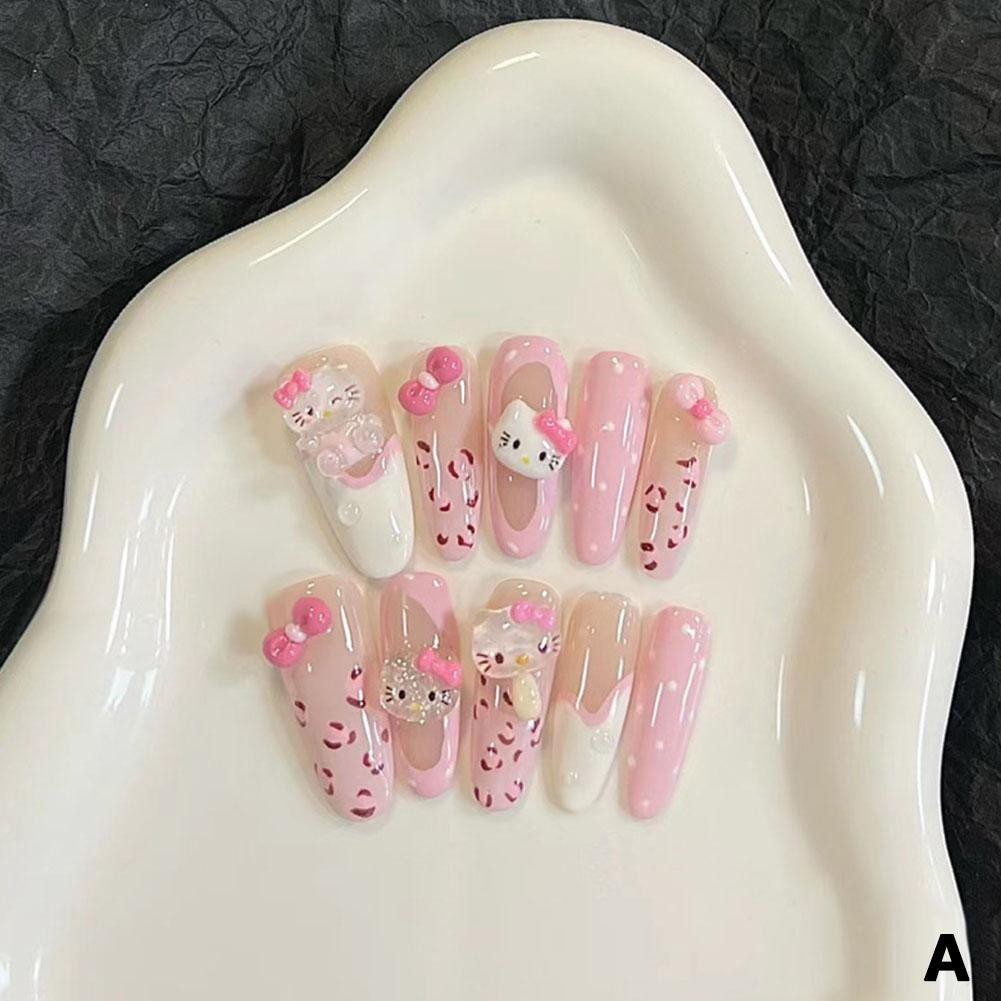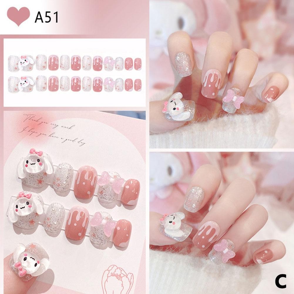 เล็บยาวศิลปะน่ารักการ์ตูนสวมใส่เล็บ Diy เล็บเล็บชุดปลอม L5t0