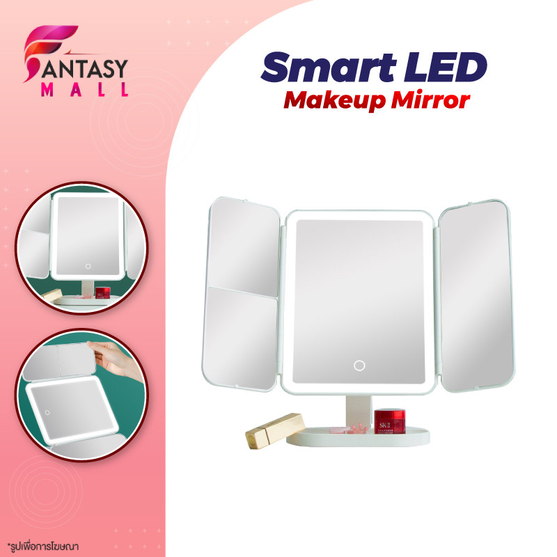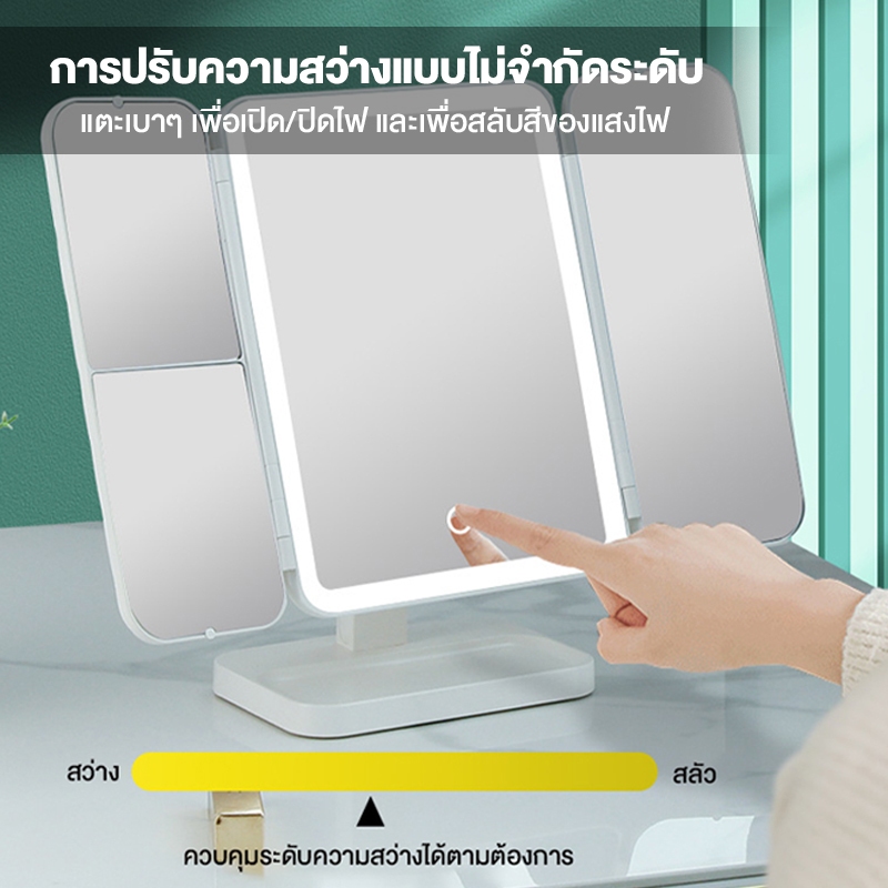 Smart LED Makeup Mirror กระจกตั้งโต๊ะ ไฟ LED 3สี แบตเตอร์รี่ 1200mAh ระบบสัมผัส ชาร์จไฟได้ กระจกแต่งหน้าพกพา กระจก