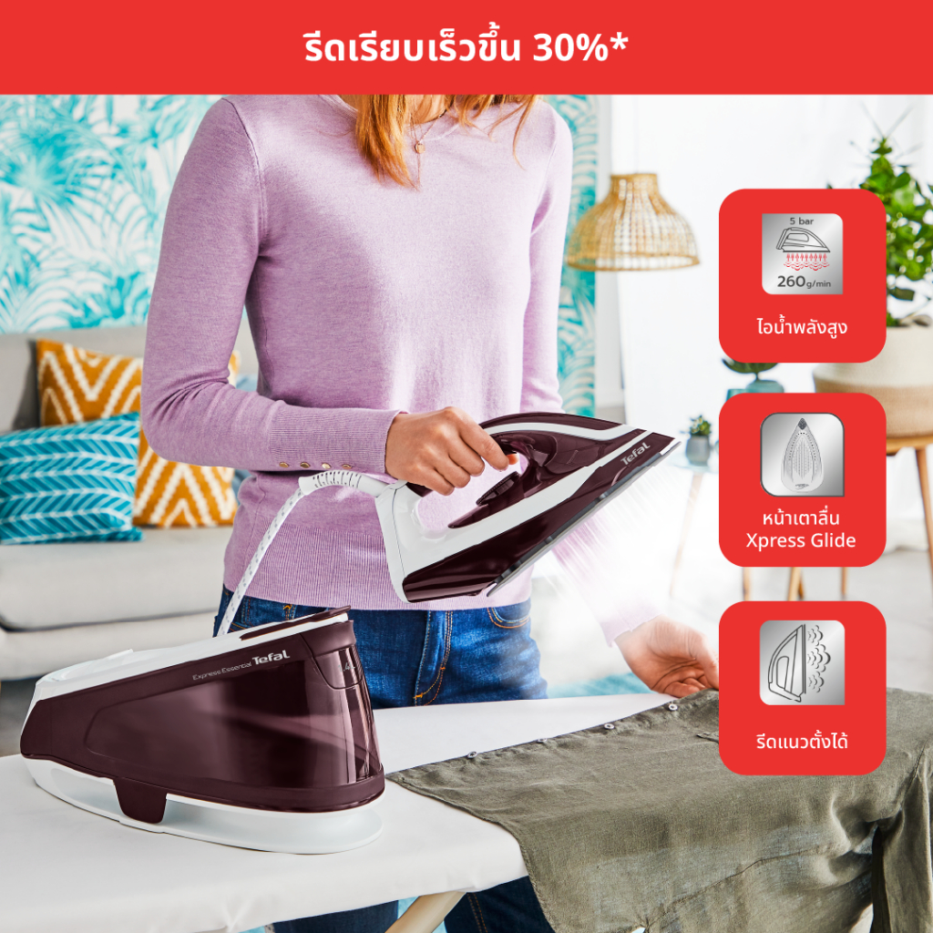 Tefal เตารีดแยกหม้อ ความจุ 1.4 L กำลังไฟ 2,200 วัตต์ แรงดัน 5 บาร์ รุ่น SV6110T0 SV6110