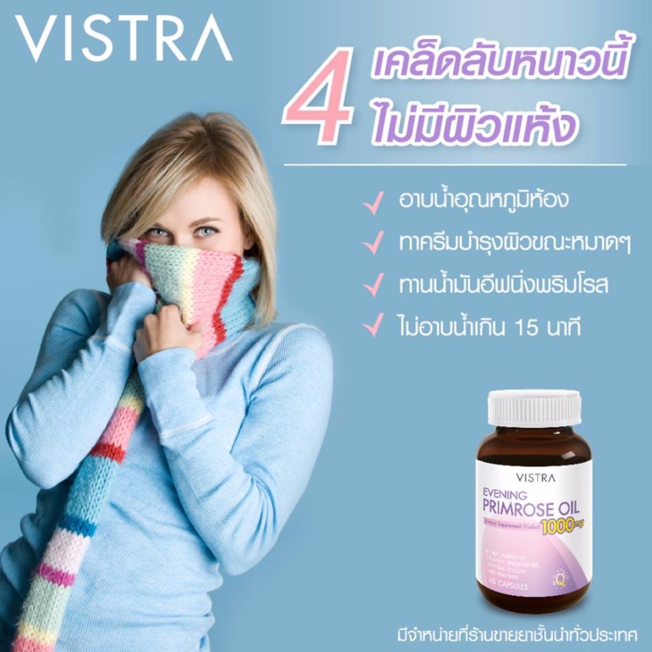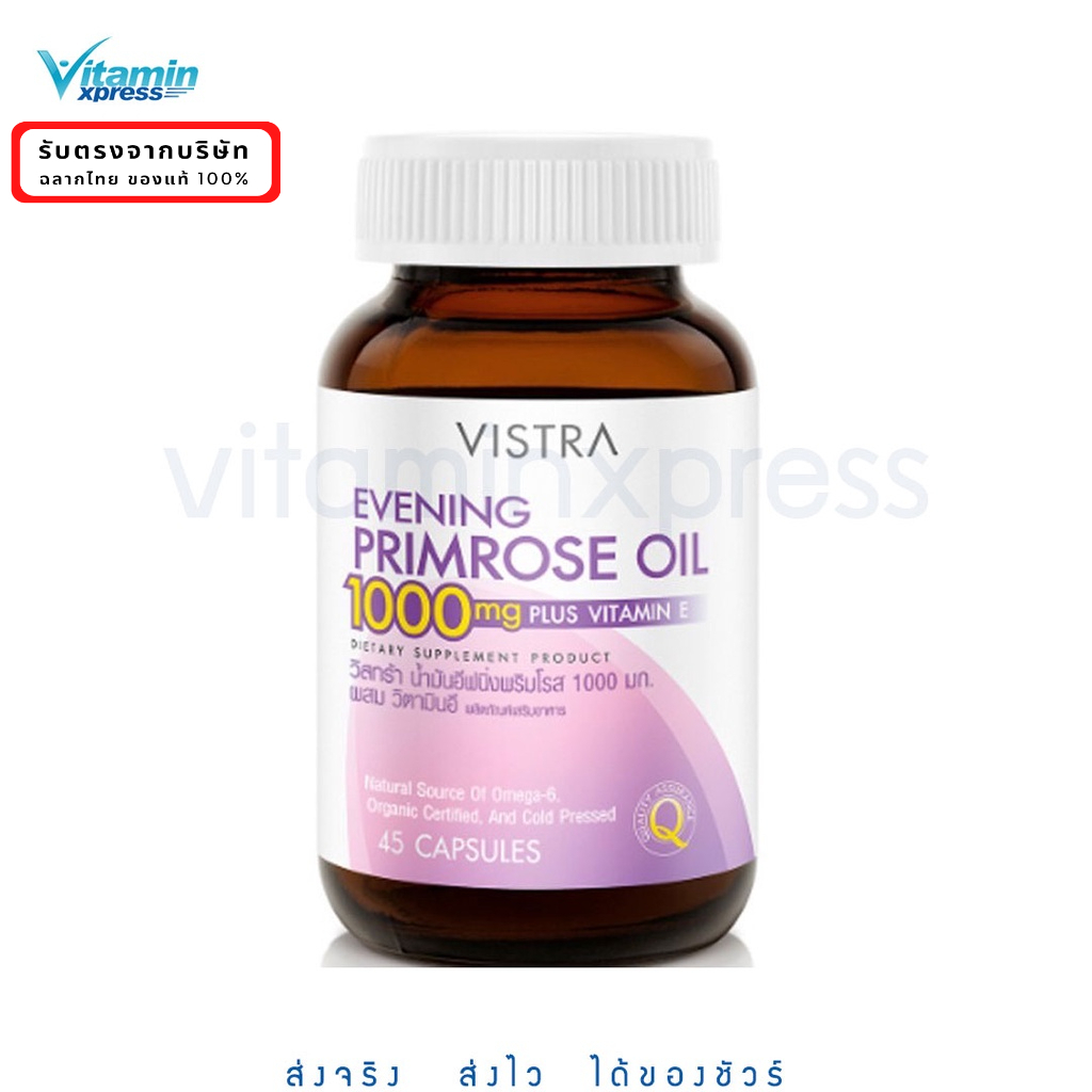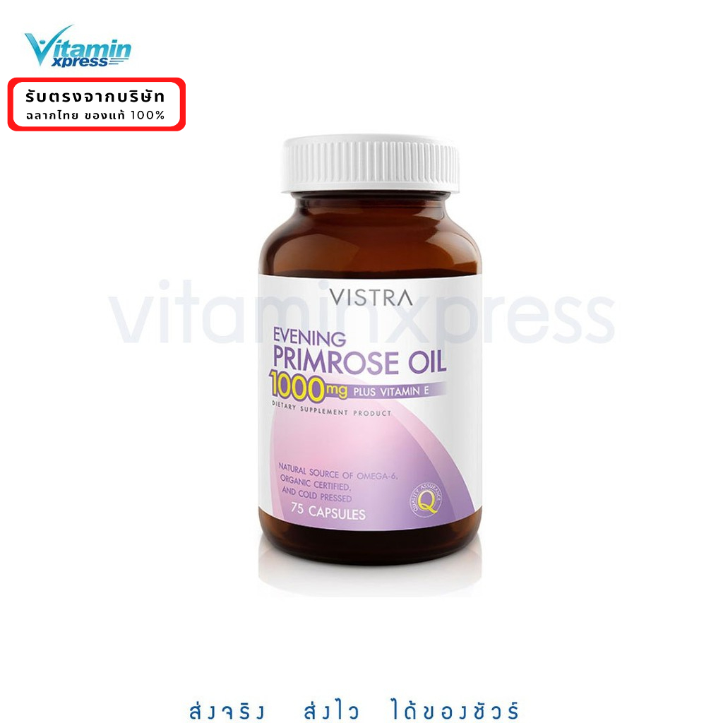 Exp 07/28 Vistra Evening Primrose Oil 1000mg 75's วิสตร้า วิตามินอี บำรุงผิว ชุ่มชื้น สวย วิสทร้า ความงาม