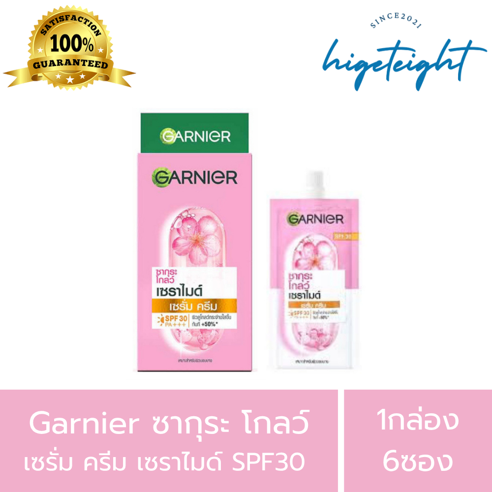 [1กล่อง6ซอง] Garnier การ์นิเย่ ซากุระ โกลว์ เซราไมด์ เซรั่ม ครีม บำรุงผิวหน้า SPF30 PA+++ 7 มล.