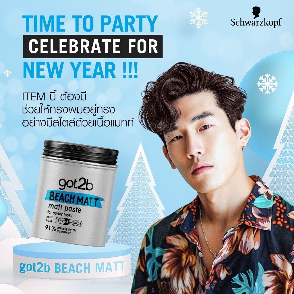 ❤️ปลอมคืนเงิน❤️Schwarzkopf Got2b Beach Matt Paste 100ml แว็กซ์จัดแต่งทรงผม สูตรบีช แมทท์