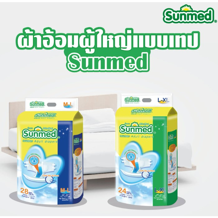 Sunmed adult diapers ผ้าอ้อมผู้ใหญ่แบบเทปกาว 2 ขนาด M-Lจำนวน 10ชิ้น และL-XL จำนวน 8 ชิ้น