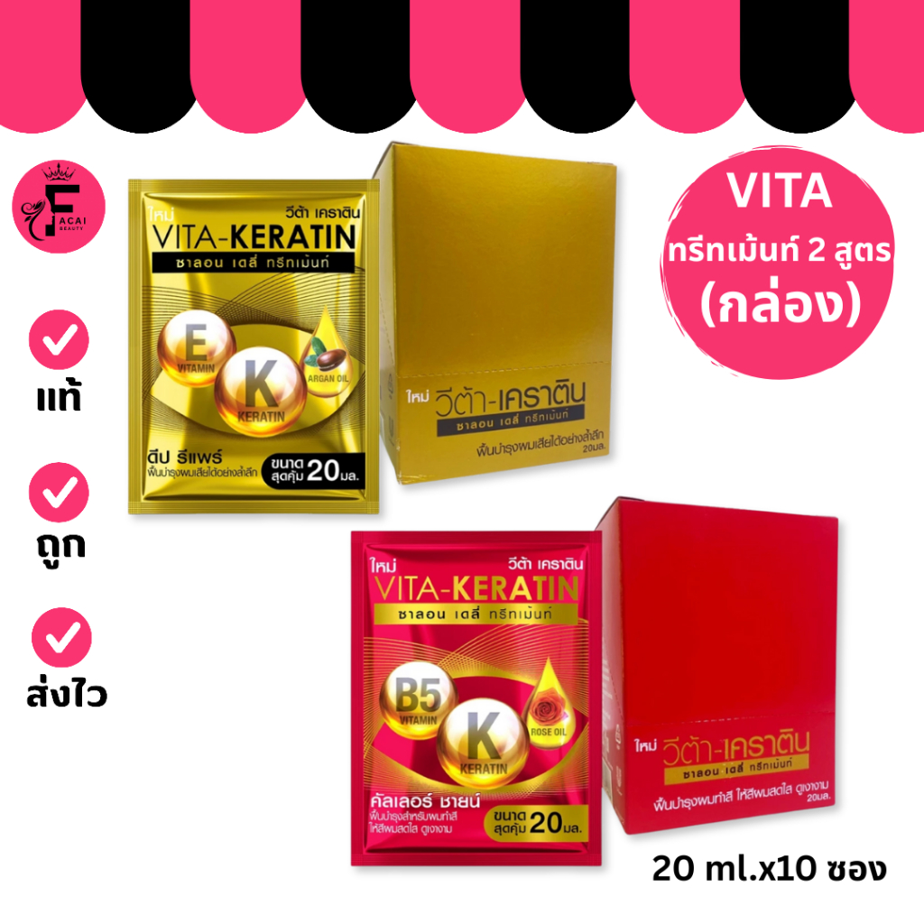 (1 กล่อง) Vita-Keratin – วีต้า เคราติน ซาลอน เดลี่ ทรีทเม้นท์ มีให้เลือก 2 สูตร (20 ml.)